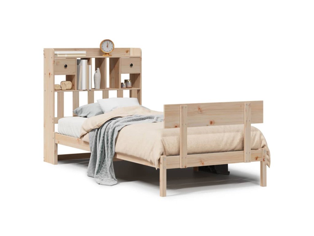 Postel s knihovnou bez matrace 90 x 200 cm masivní borovice 3321828