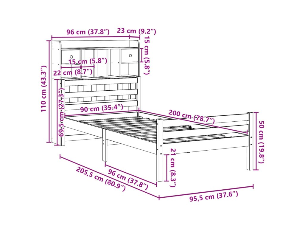 Postel s knihovnou bez matrace 90 x 200 cm masivní borovice 3322257