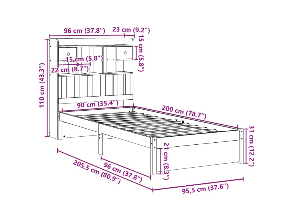 Postel s knihovnou bez matrace 90 x 200 cm masivní borovice 3322413
