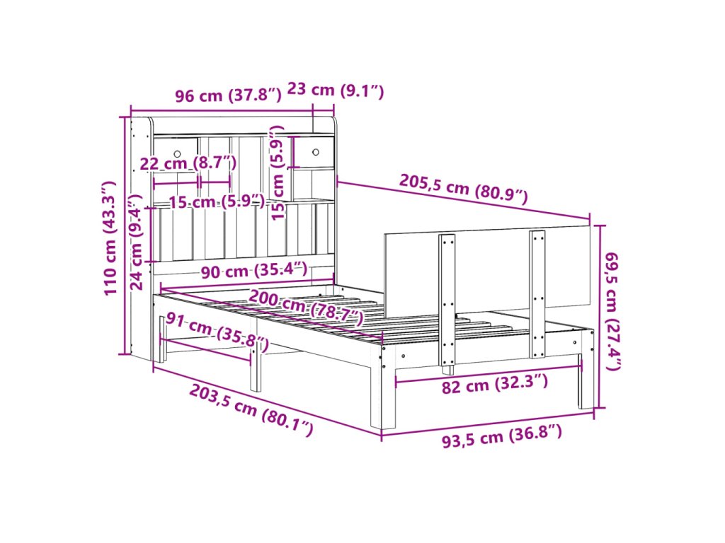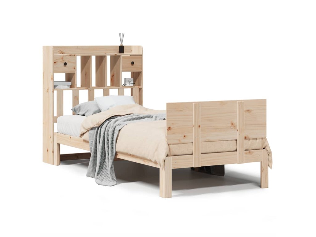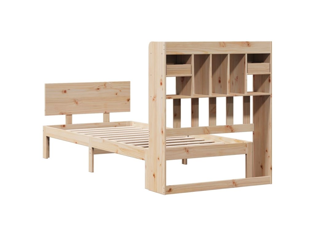 Postel s knihovnou bez matrace 90 x 200 cm masivní borovice 3322686