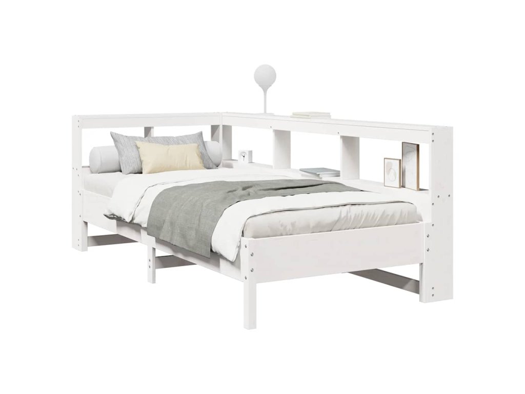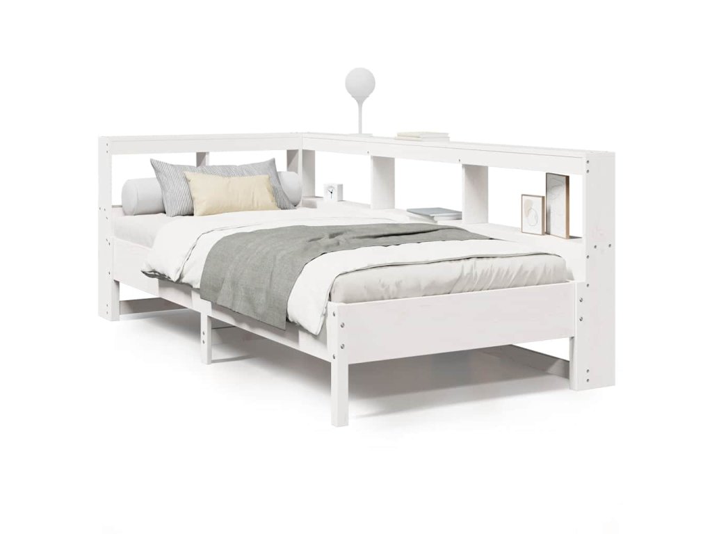 Postel s knihovnou bez matrace bílá 100x200 cm masivní borovice 3324428