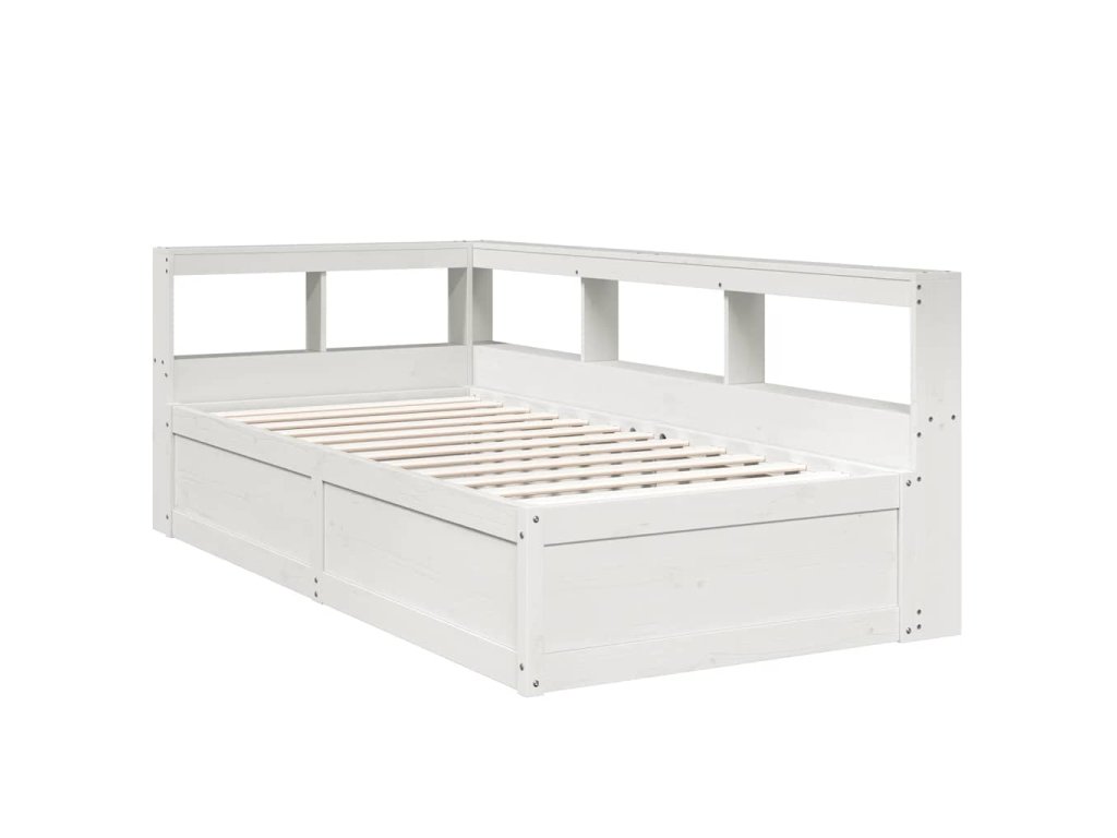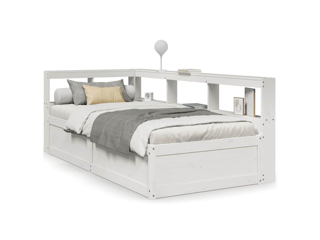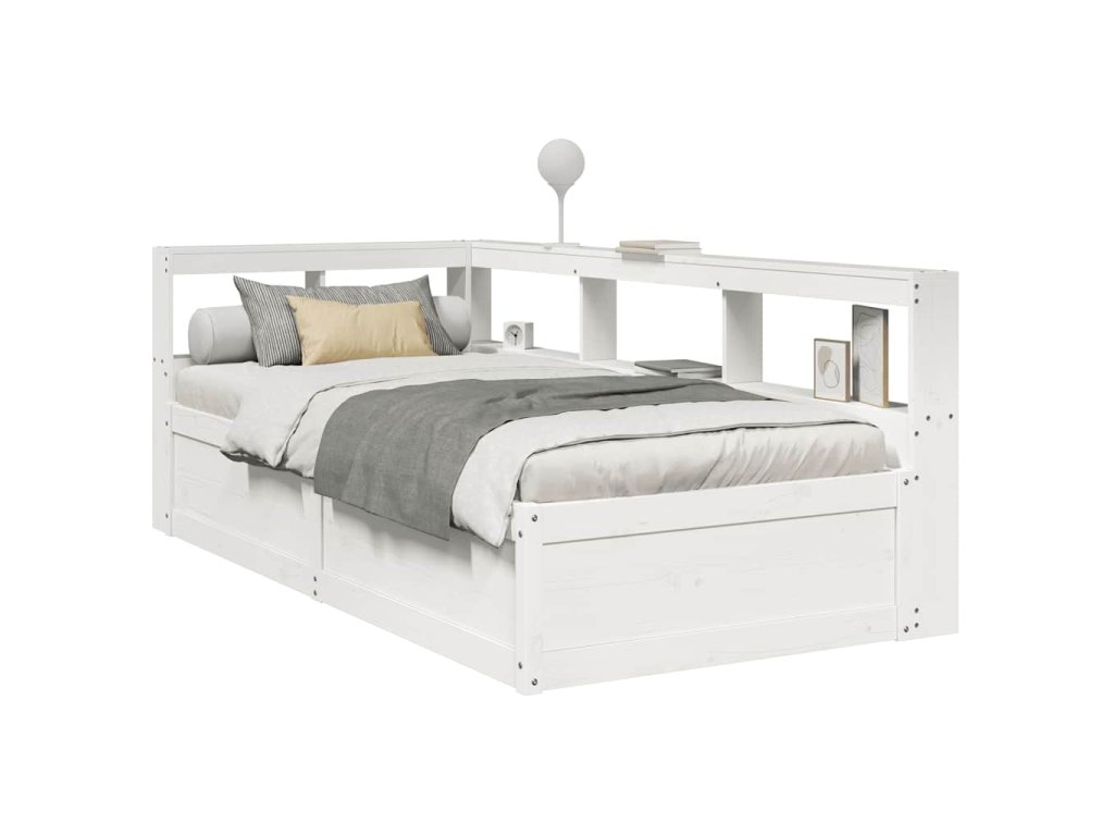 Postel s knihovnou bez matrace bílá 100x200 cm masivní borovice 3324467