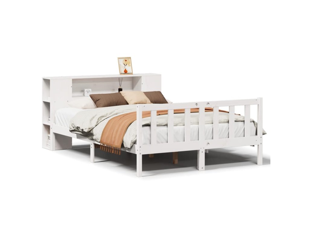 Postel s knihovnou bez matrace bílá 120x190 cm masivní borovice 3321650