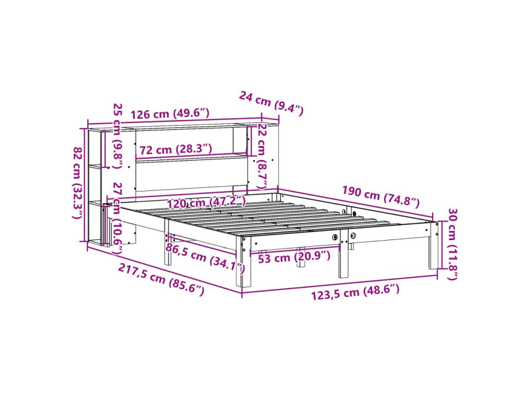 Postel s knihovnou bez matrace bílá 120x190 cm masivní borovice 3322508