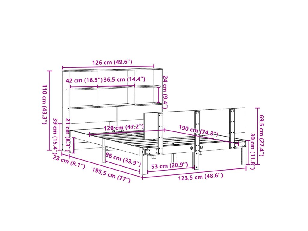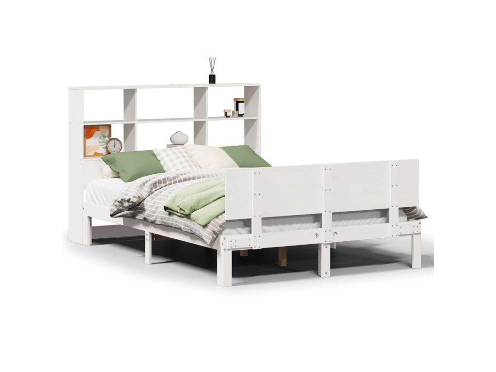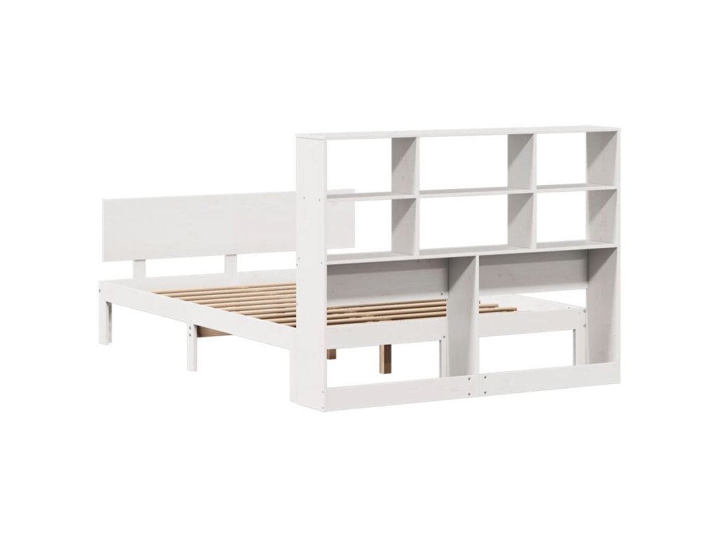 Postel s knihovnou bez matrace bílá 120x190 cm masivní borovice 3322655