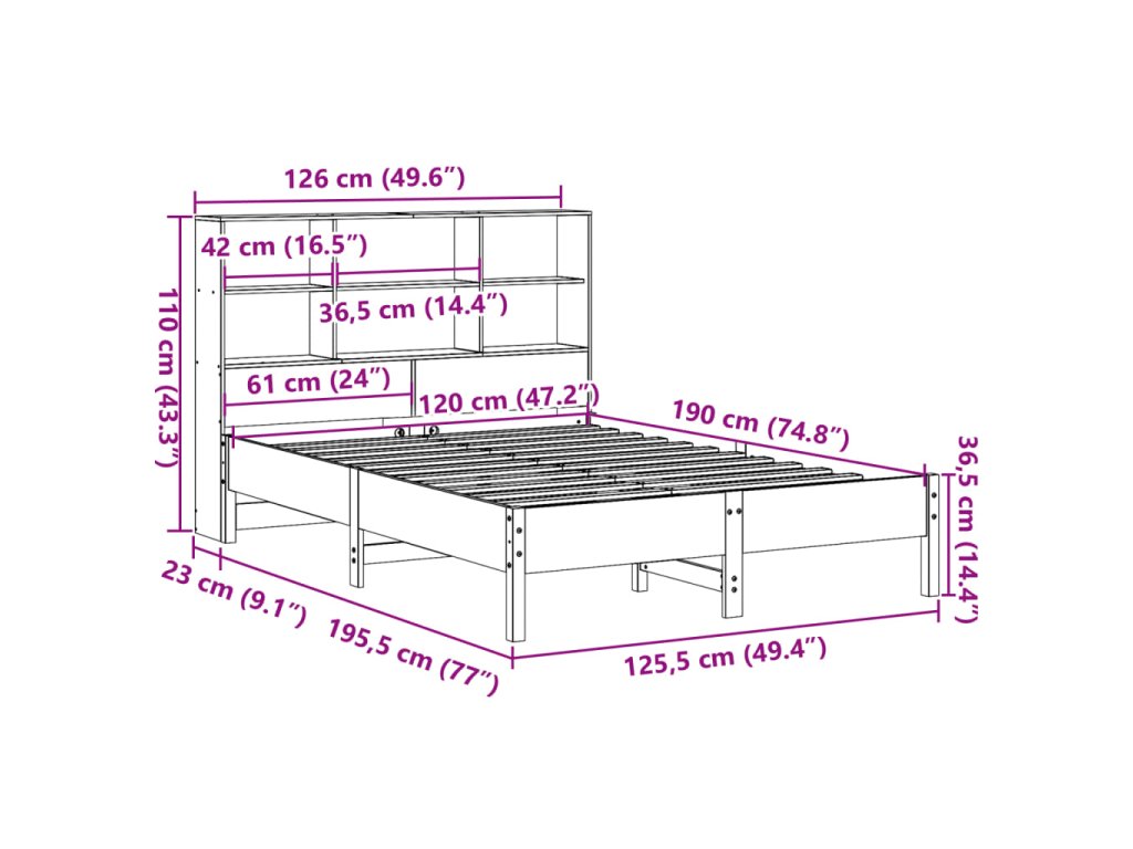 Postel s knihovnou bez matrace bílá 120x190 cm masivní borovice 3322889