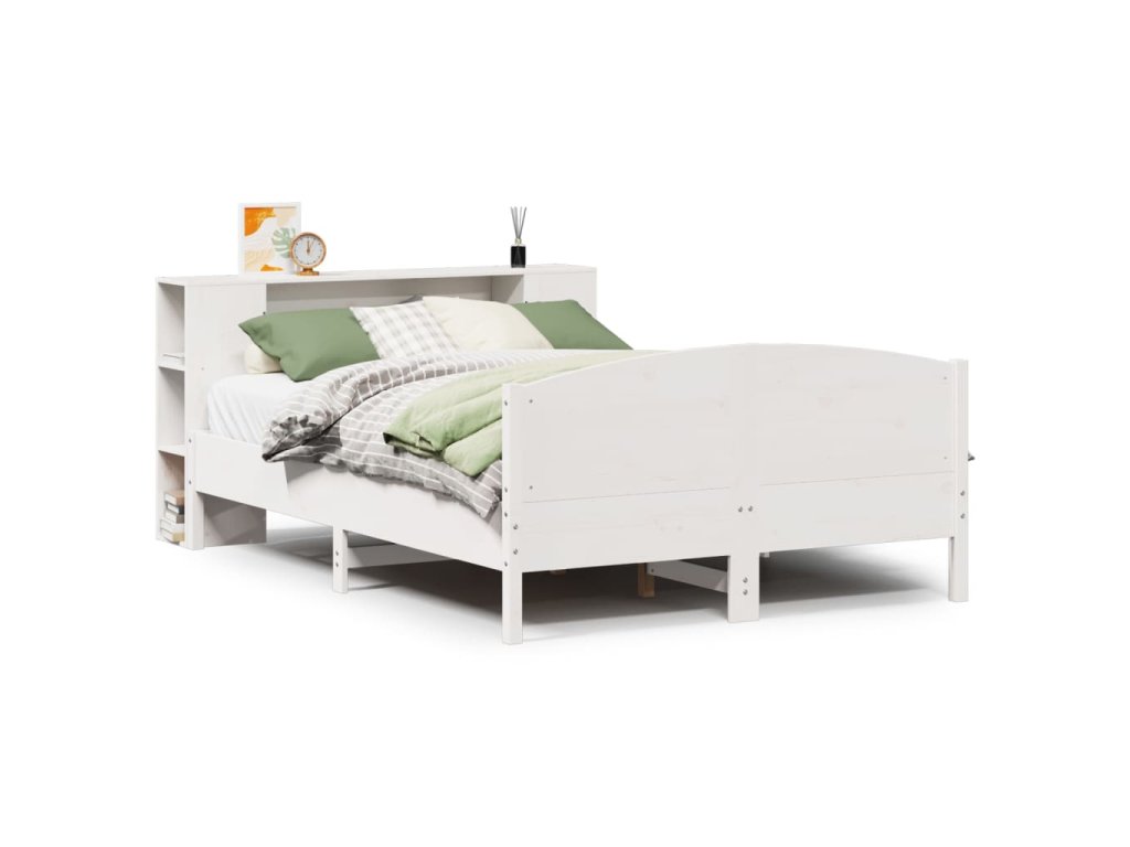 Postel s knihovnou bez matrace bílá 120x190 cm masivní borovice 3323078