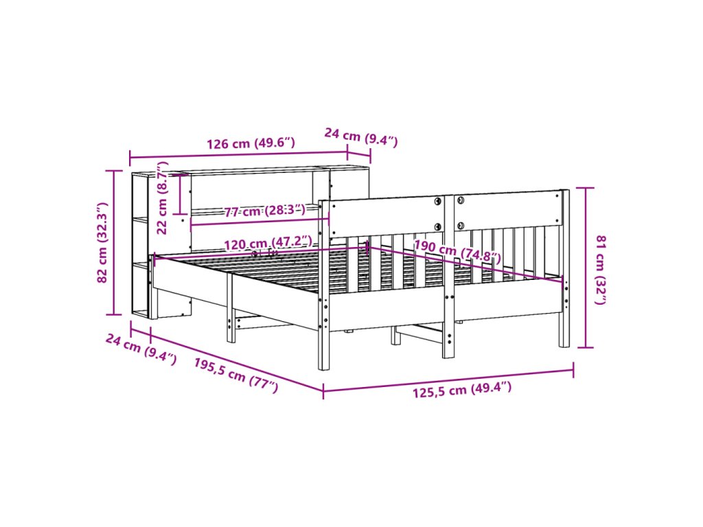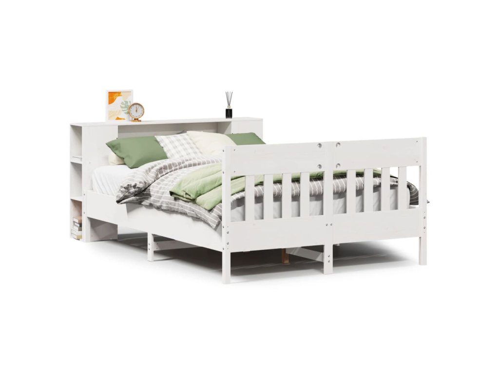 Postel s knihovnou bez matrace bílá 120x190 cm masivní borovice 3323195