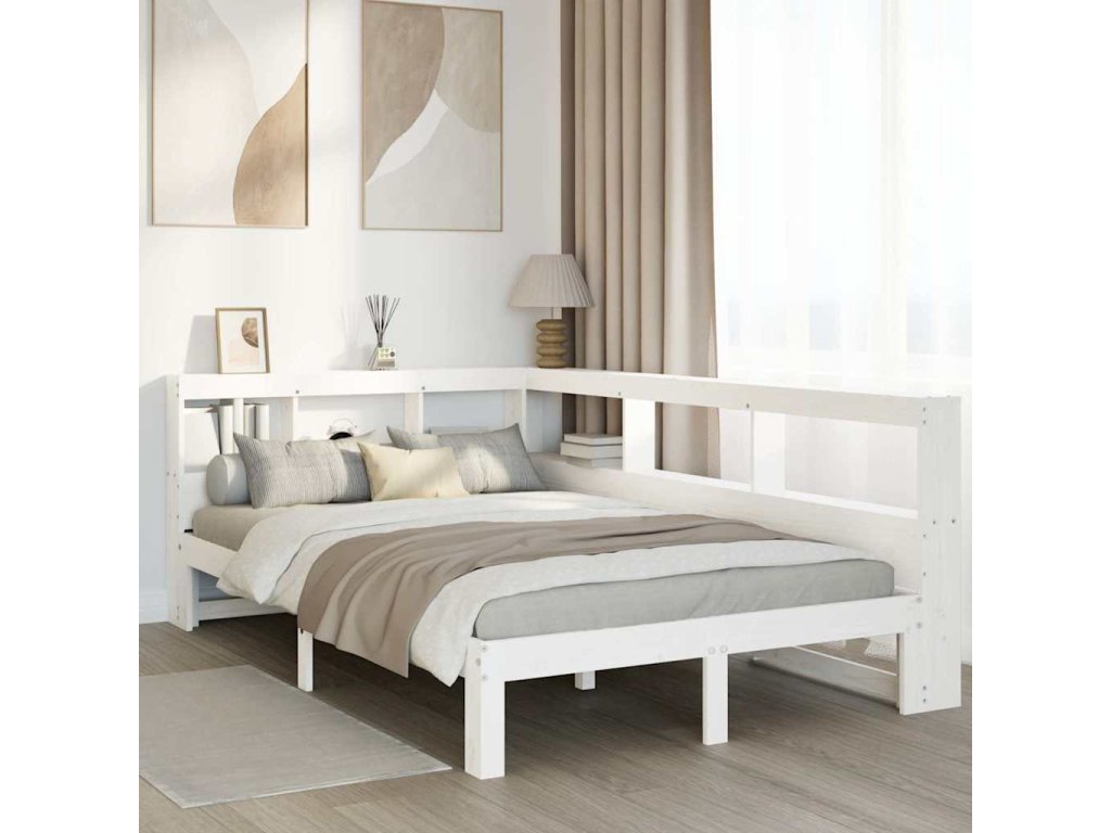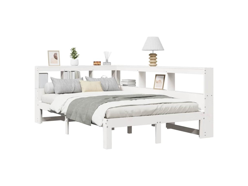Postel s knihovnou bez matrace bílá 120x190 cm masivní borovice 3324401