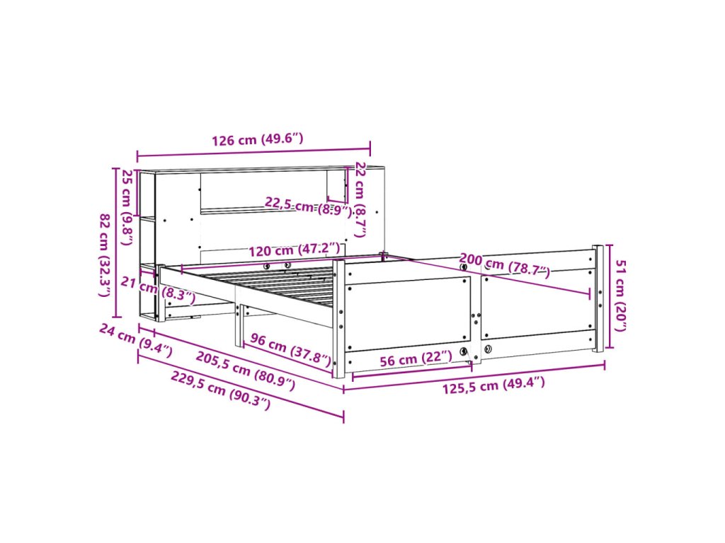 Postel s knihovnou bez matrace bílá 120x200 cm masivní borovice 3322436