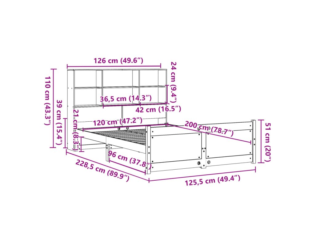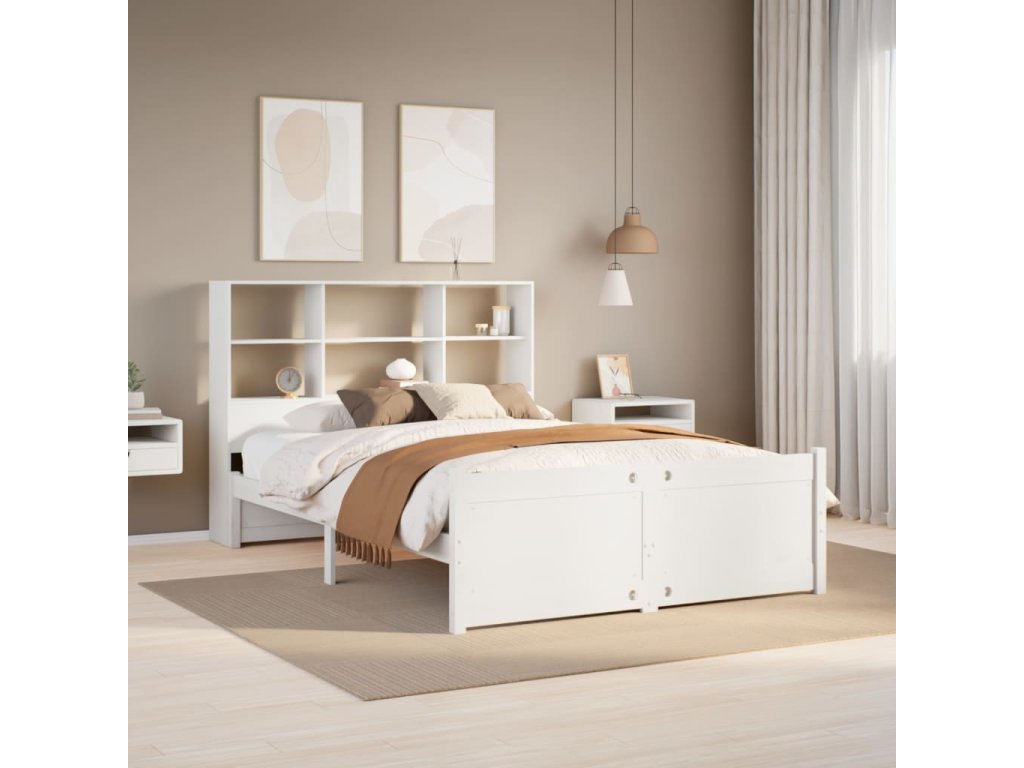 Postel s knihovnou bez matrace bílá 120x200 cm masivní borovice 3322470