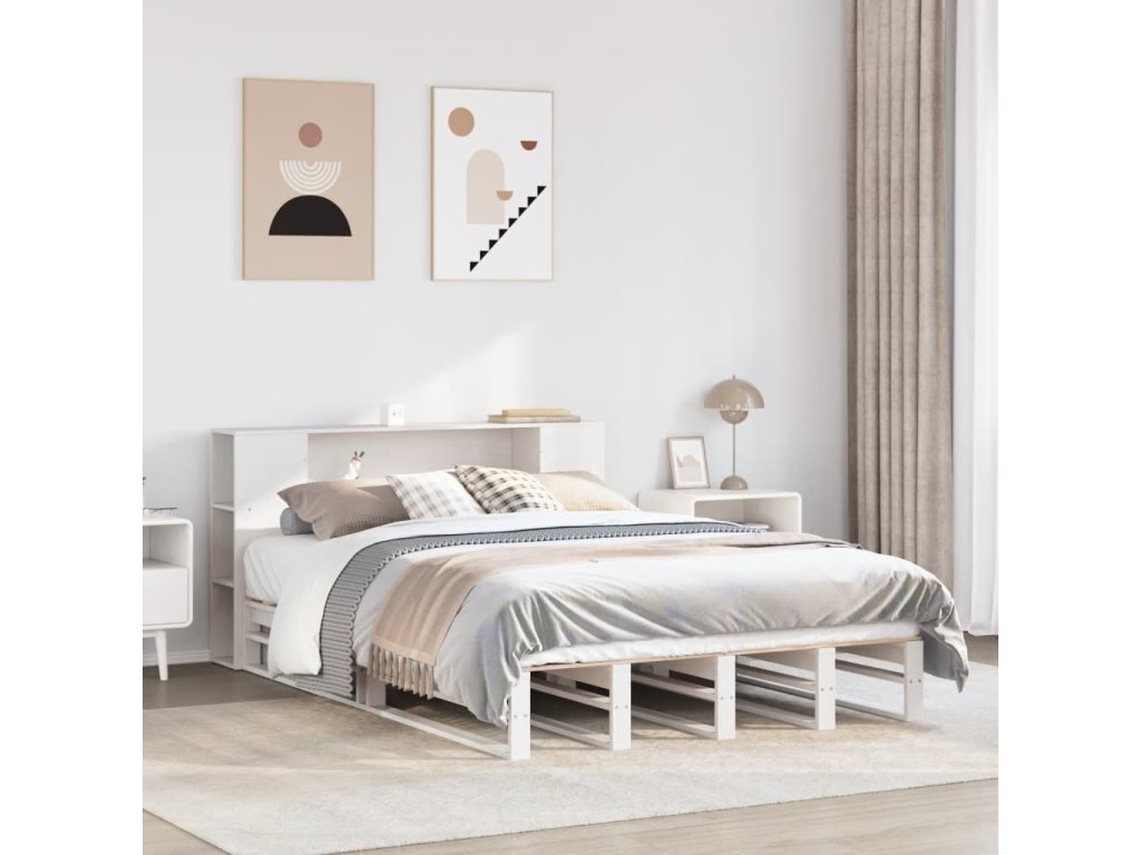 Postel s knihovnou bez matrace bílá 135 x 190 cm masivní dřevo 3323894