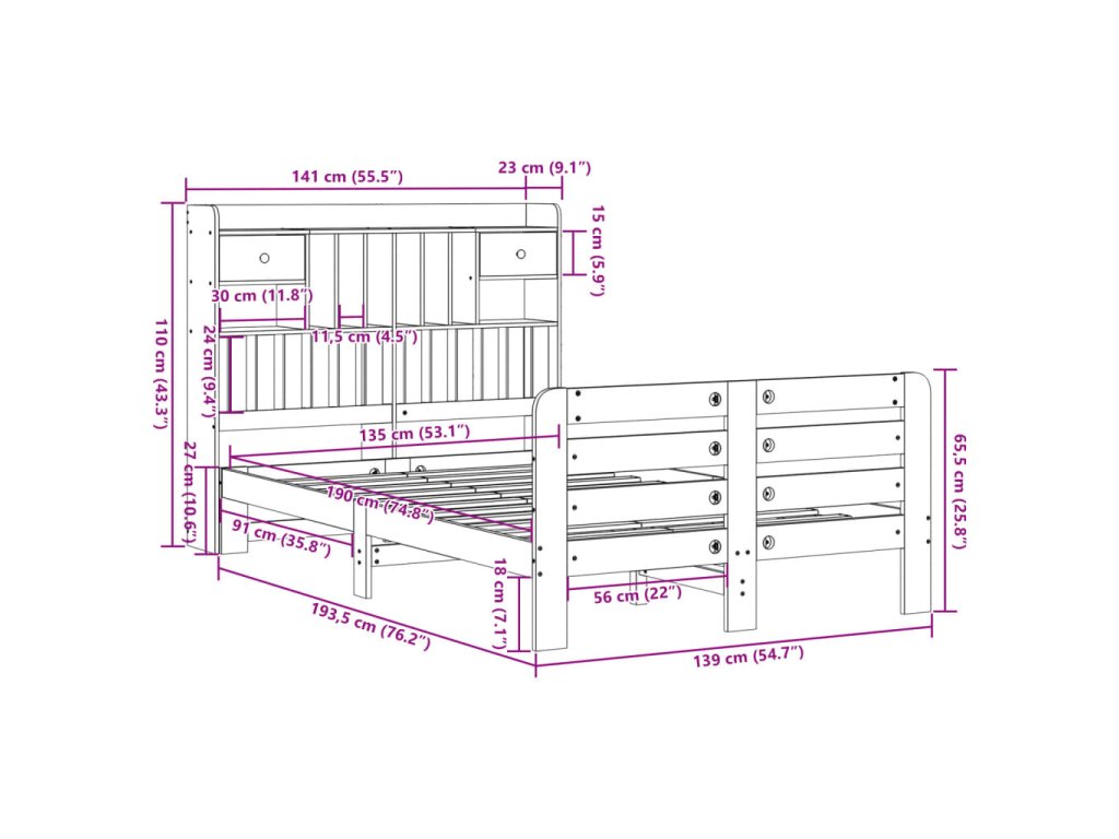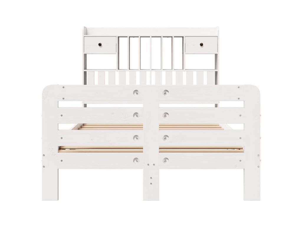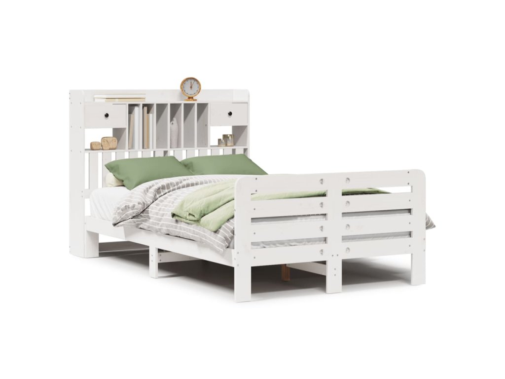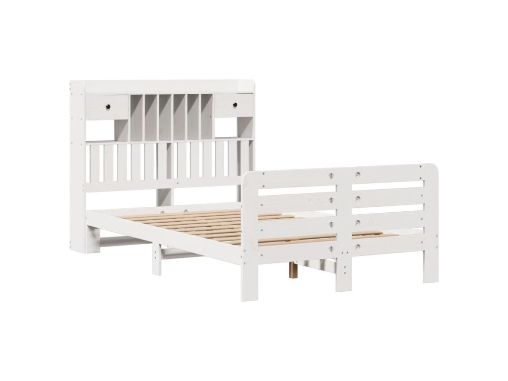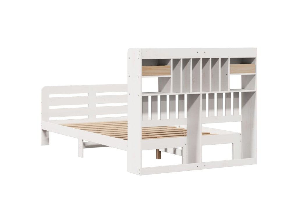 Postel s knihovnou bez matrace bílá 135x190 cm masivní borovice 3309987