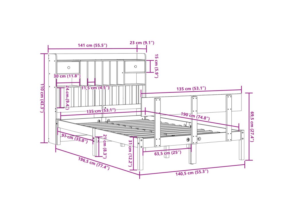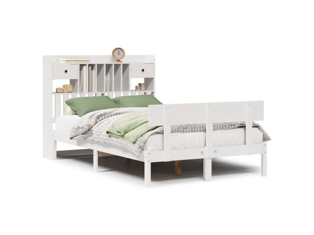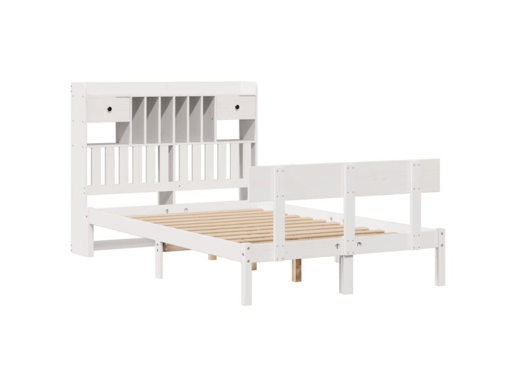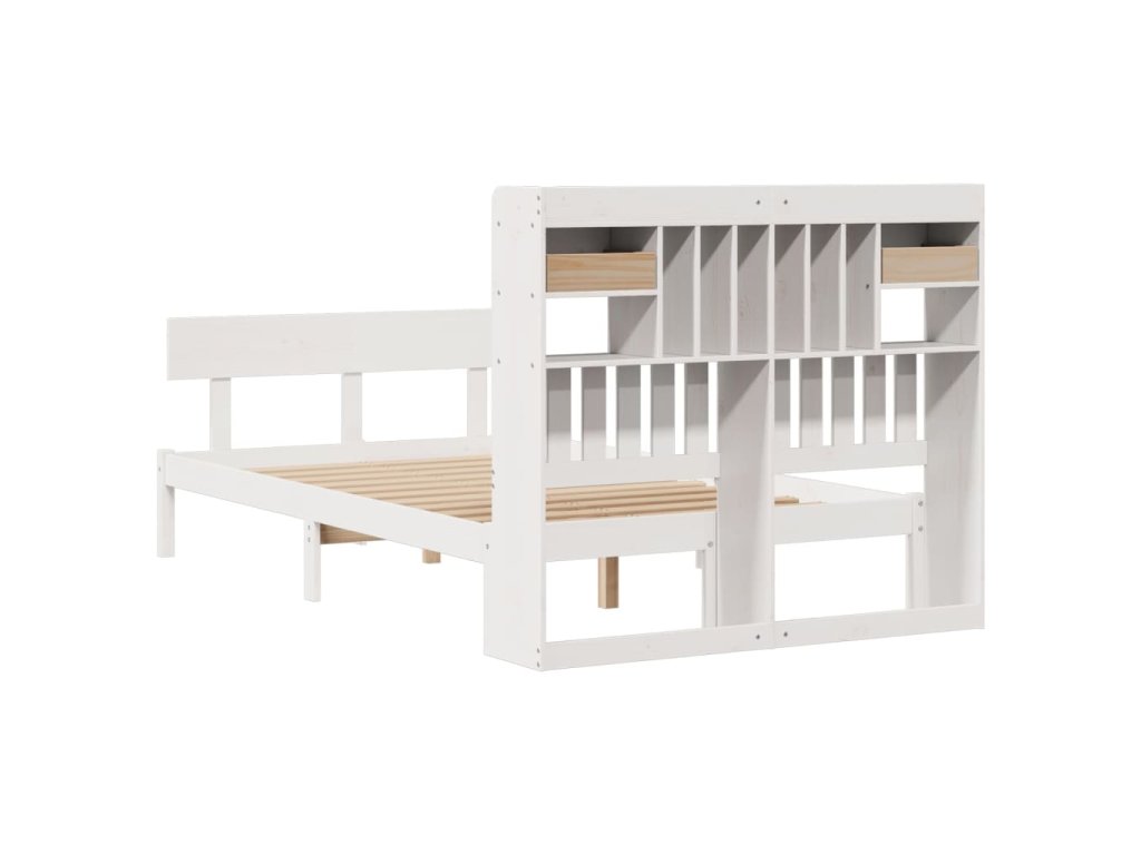 Postel s knihovnou bez matrace bílá 135x190 cm masivní borovice 3321825