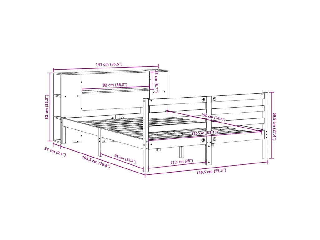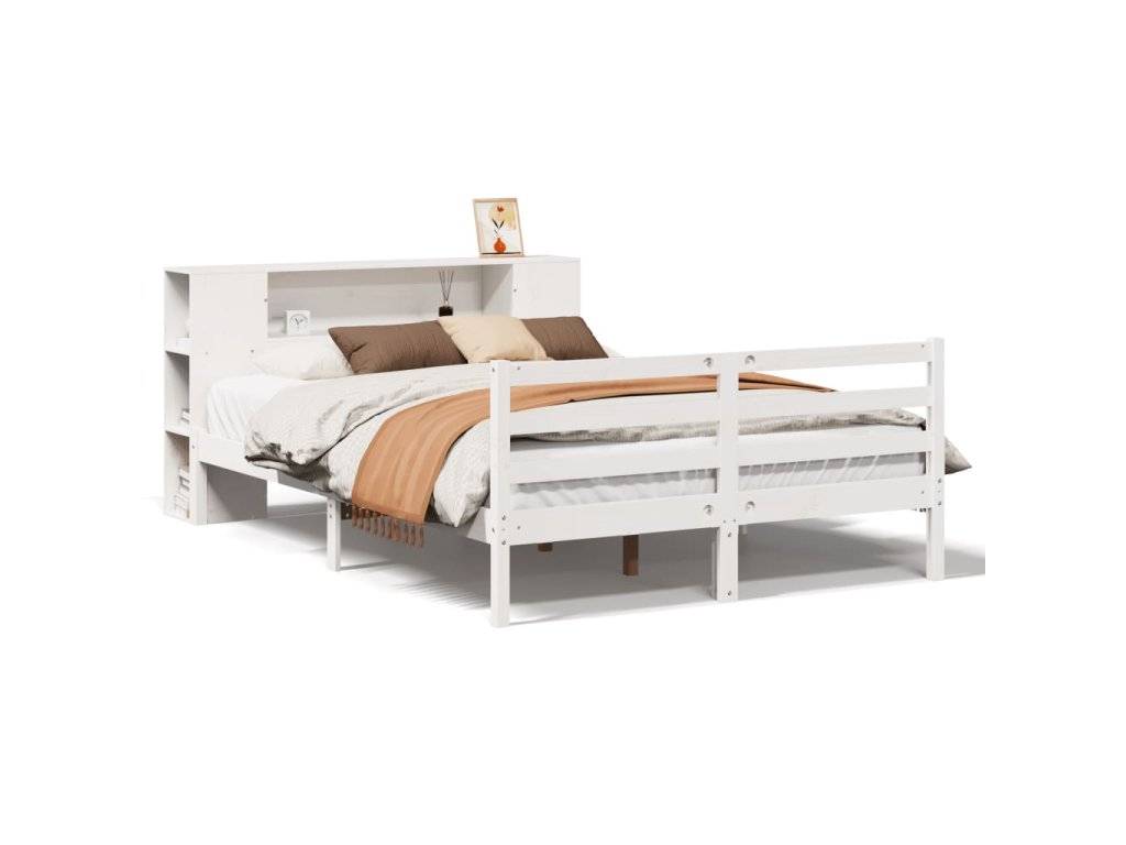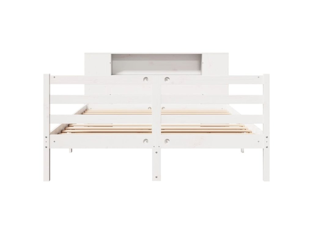 Postel s knihovnou bez matrace bílá 135x190 cm masivní borovice 3321847