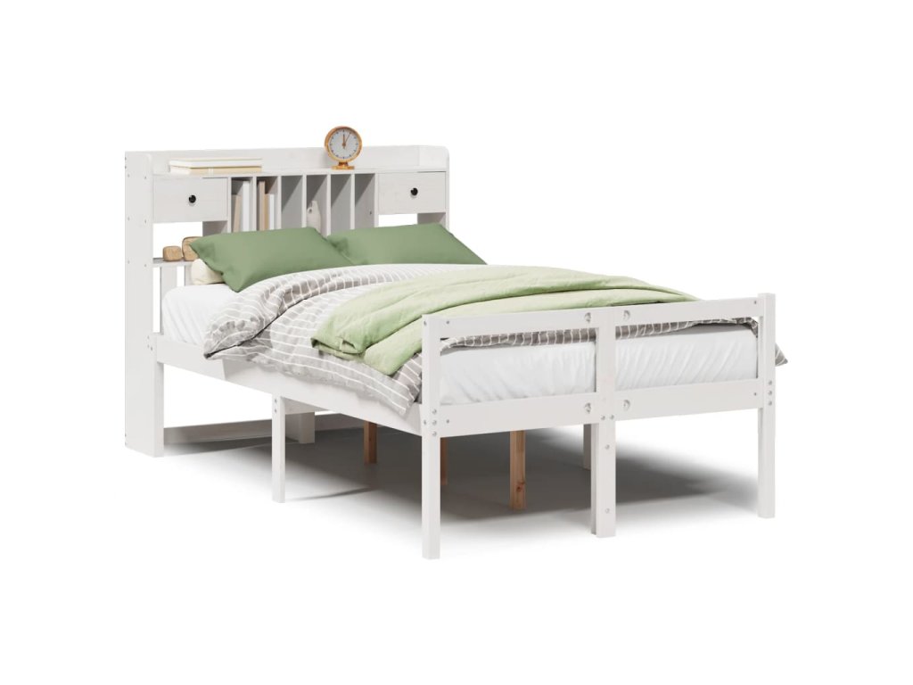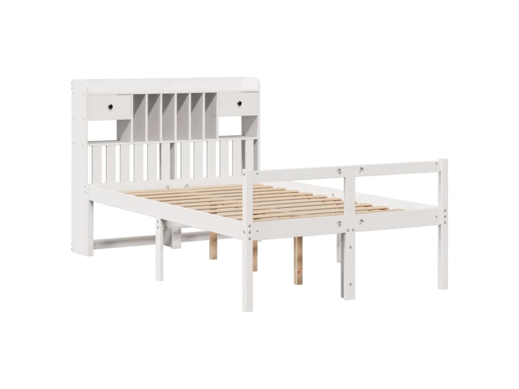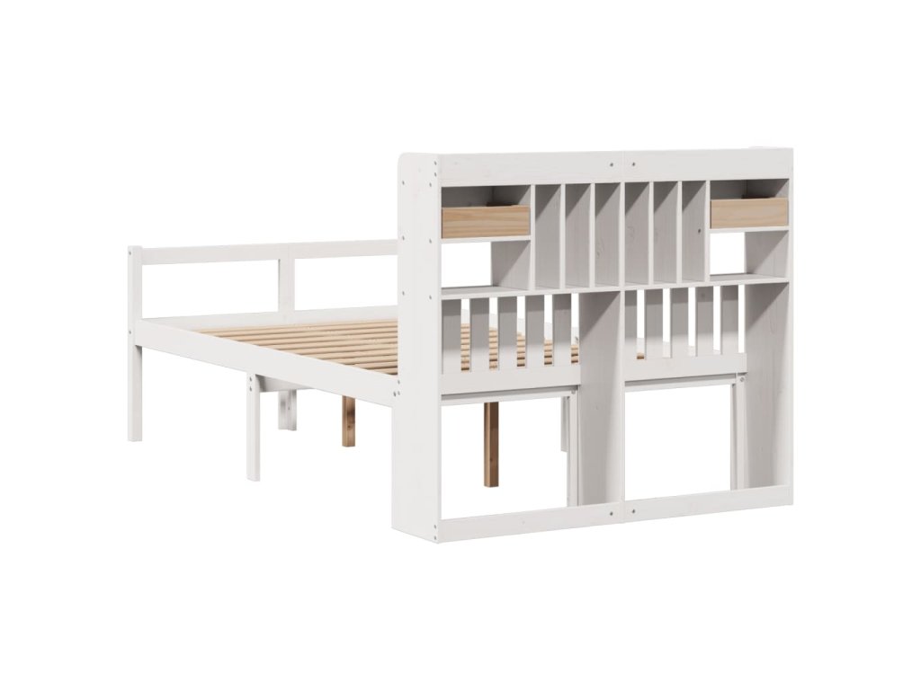 Postel s knihovnou bez matrace bílá 135x190 cm masivní borovice 3322046