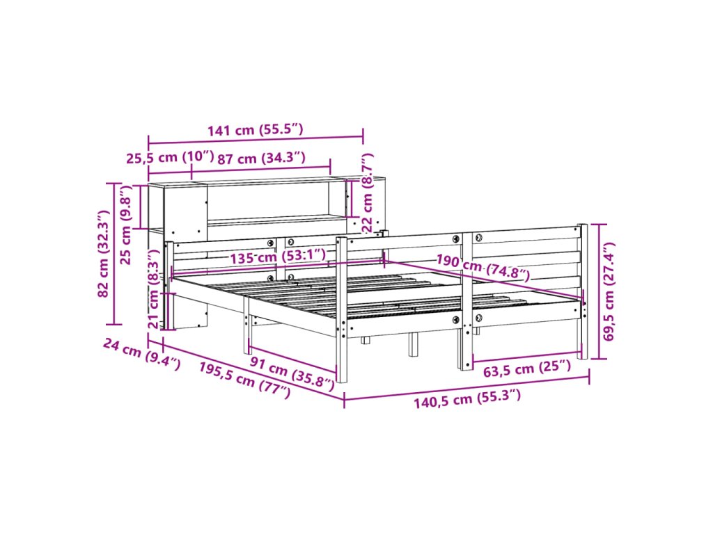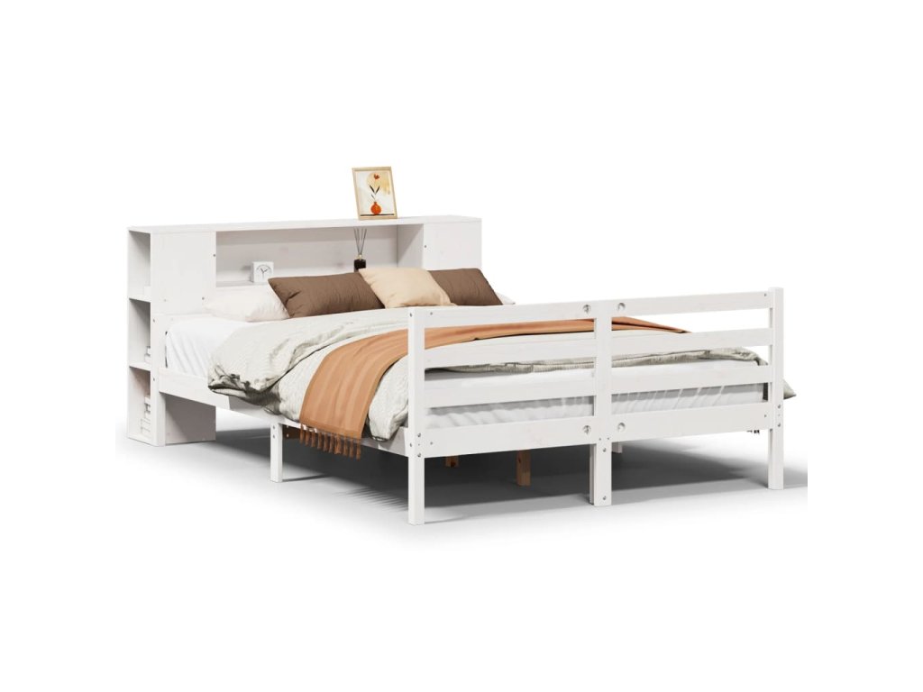 Postel s knihovnou bez matrace bílá 135x190 cm masivní borovice 3322198