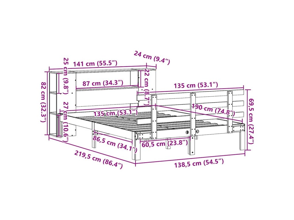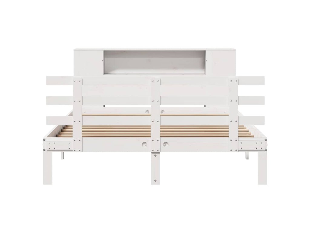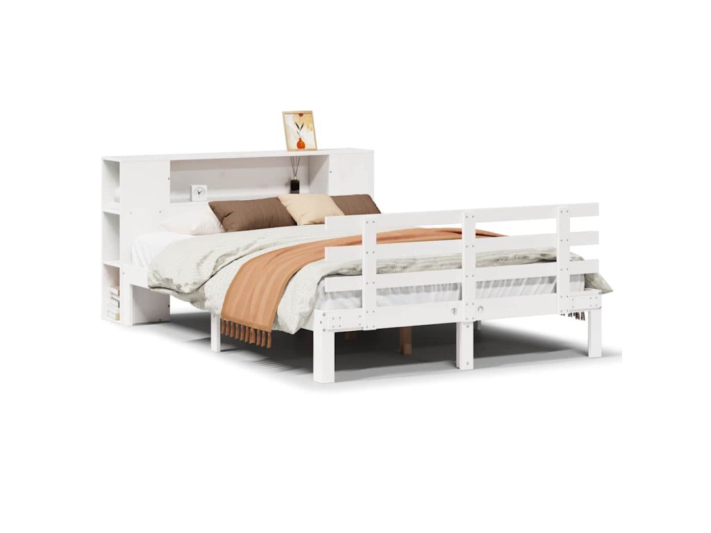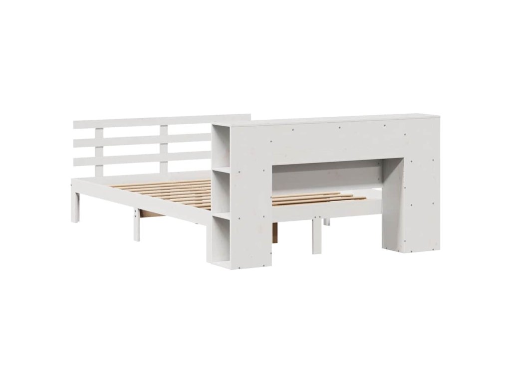 Postel s knihovnou bez matrace bílá 135x190 cm masivní borovice 3322705
