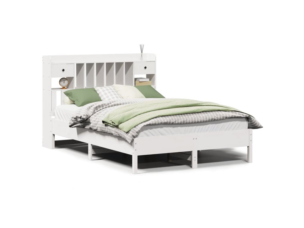 Postel s knihovnou bez matrace bílá 135x190 cm masivní borovice 3322925