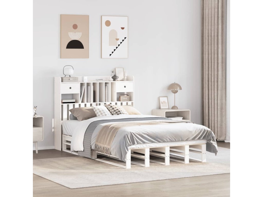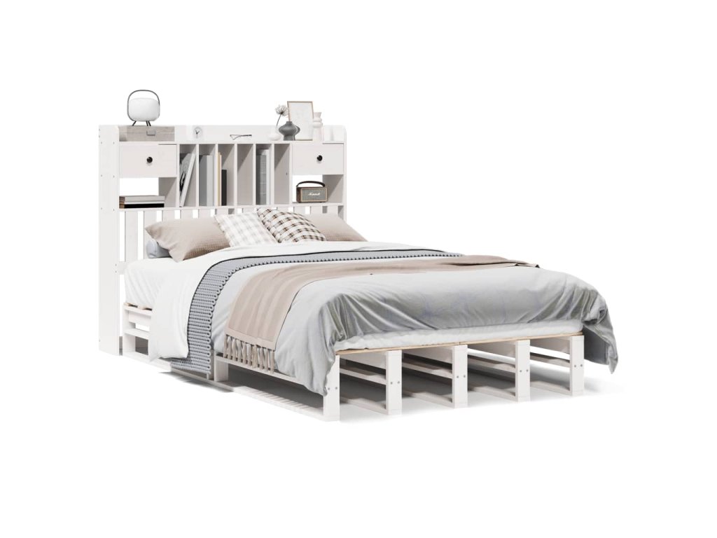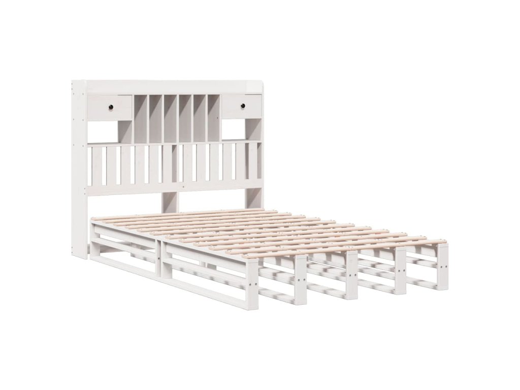 Postel s knihovnou bez matrace bílá 135x190 cm masivní borovice 3323984
