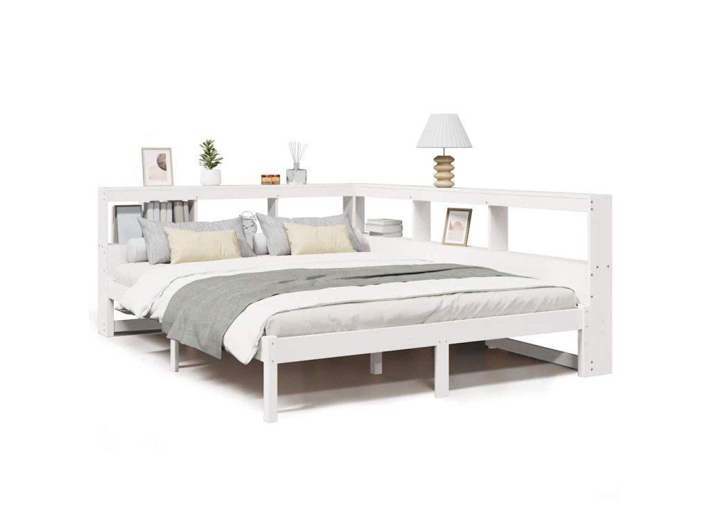 Postel s knihovnou bez matrace bílá 135x190 cm masivní borovice 3324333