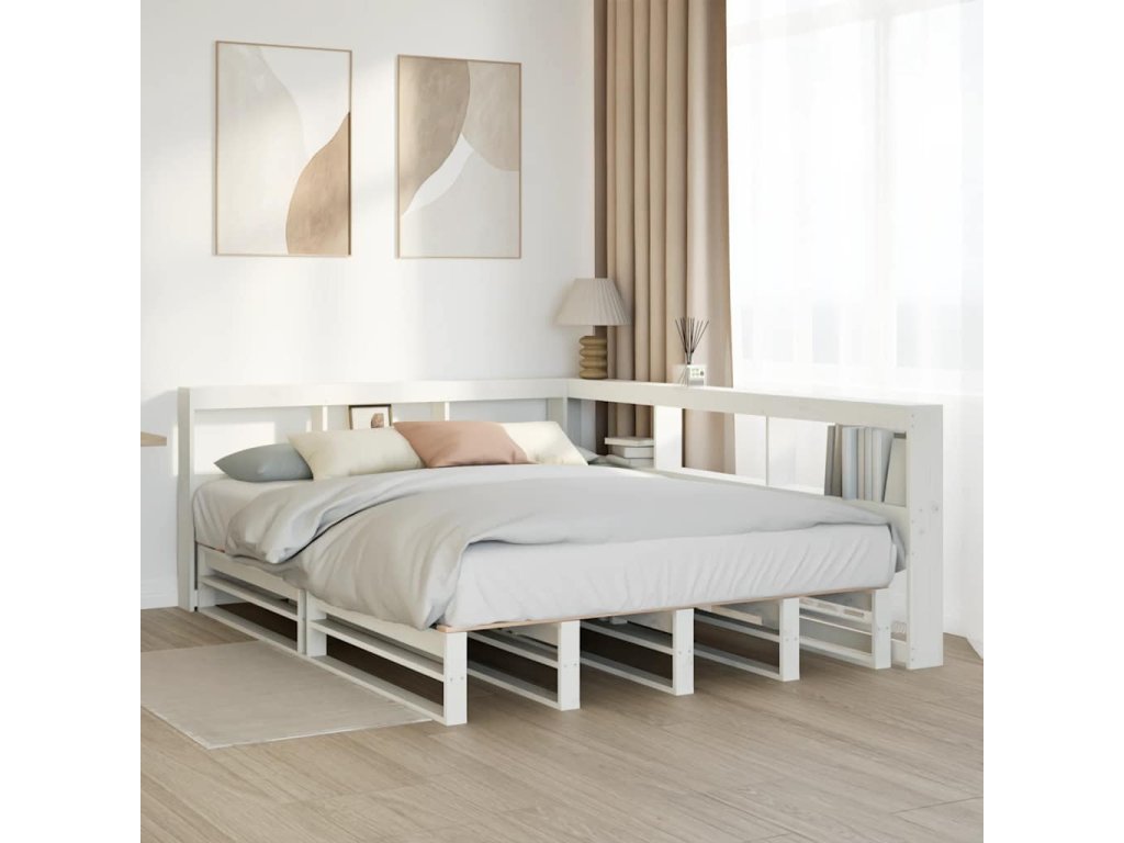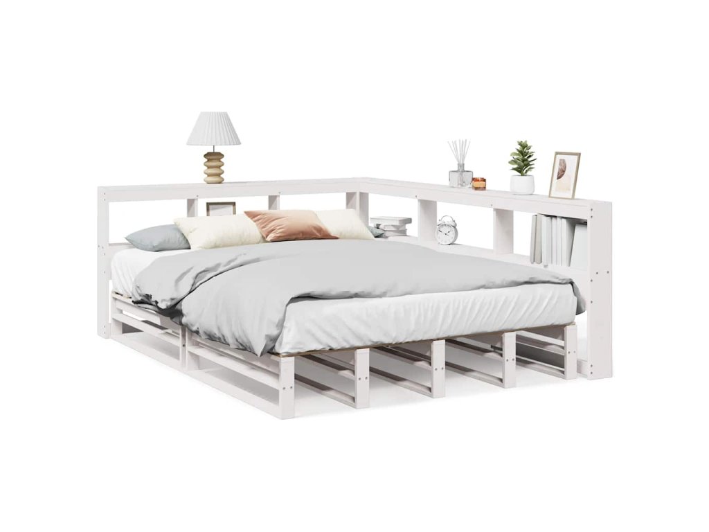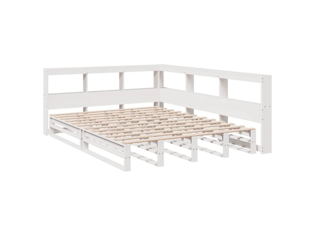 Postel s knihovnou bez matrace bílá 135x190 cm masivní borovice 3324515