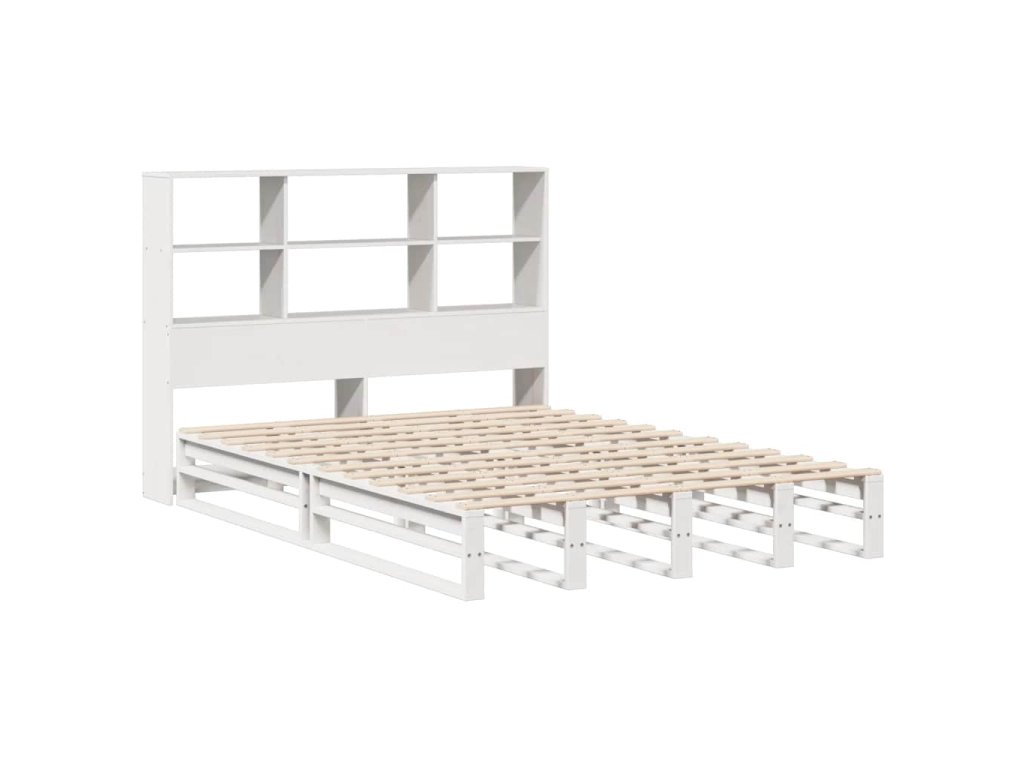 Postel s knihovnou bez matrace bílá 140 x 190 cm masivní dřevo 3323948