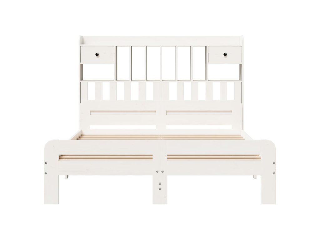Postel s knihovnou bez matrace bílá 140x190 cm masivní borovice 3308895