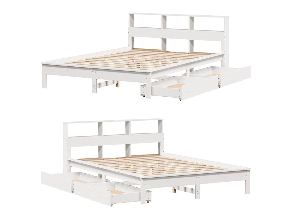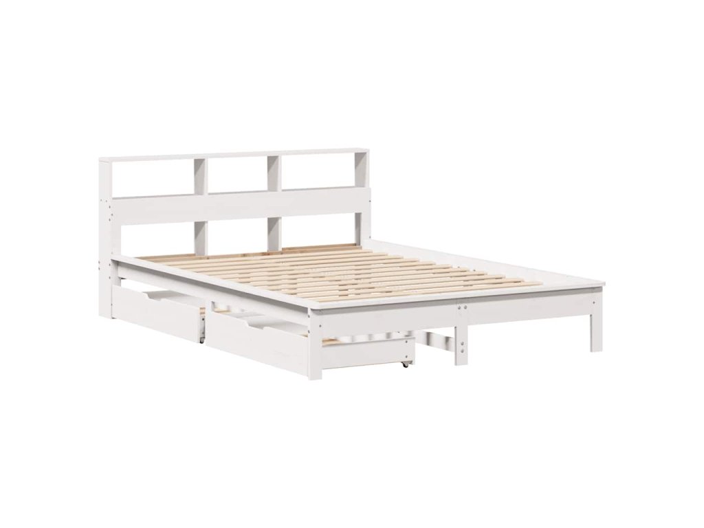 Postel s knihovnou bez matrace bílá 140x190 cm masivní borovice 3309822