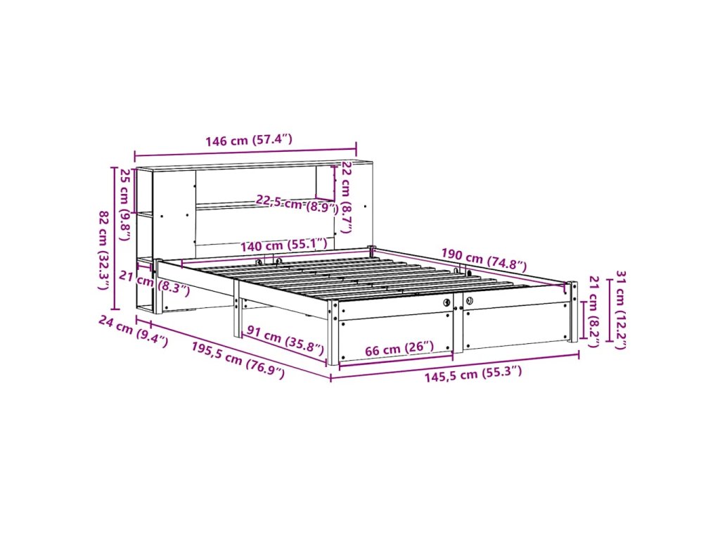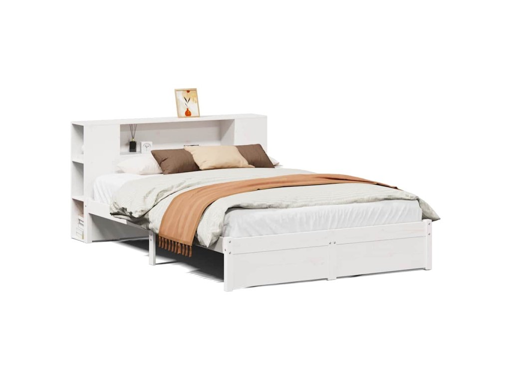 Postel s knihovnou bez matrace bílá 140x190 cm masivní borovice 3322356