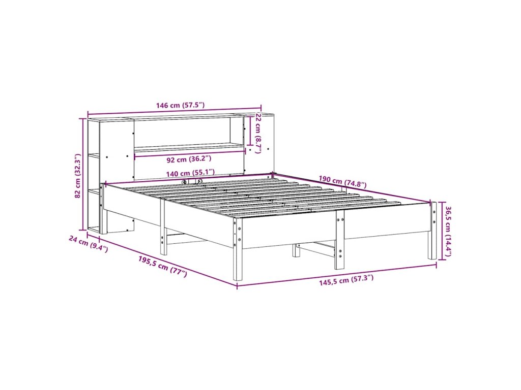 Postel s knihovnou bez matrace bílá 140x190 cm masivní borovice 3322838