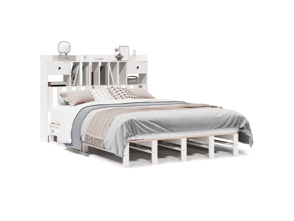Postel s knihovnou bez matrace bílá 140x190 cm masivní borovice 3323987