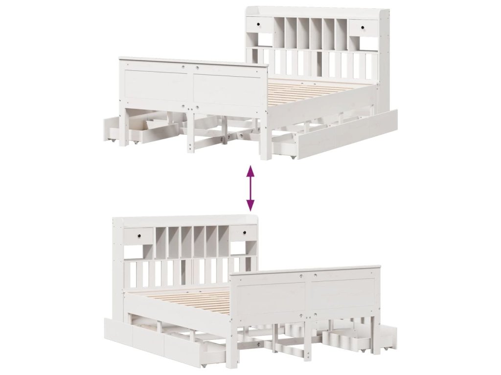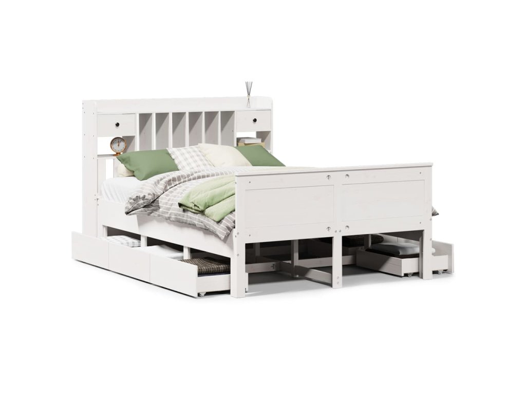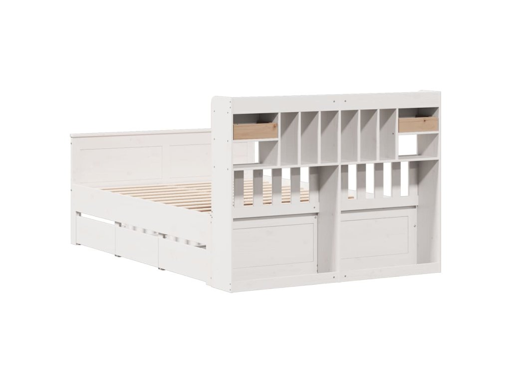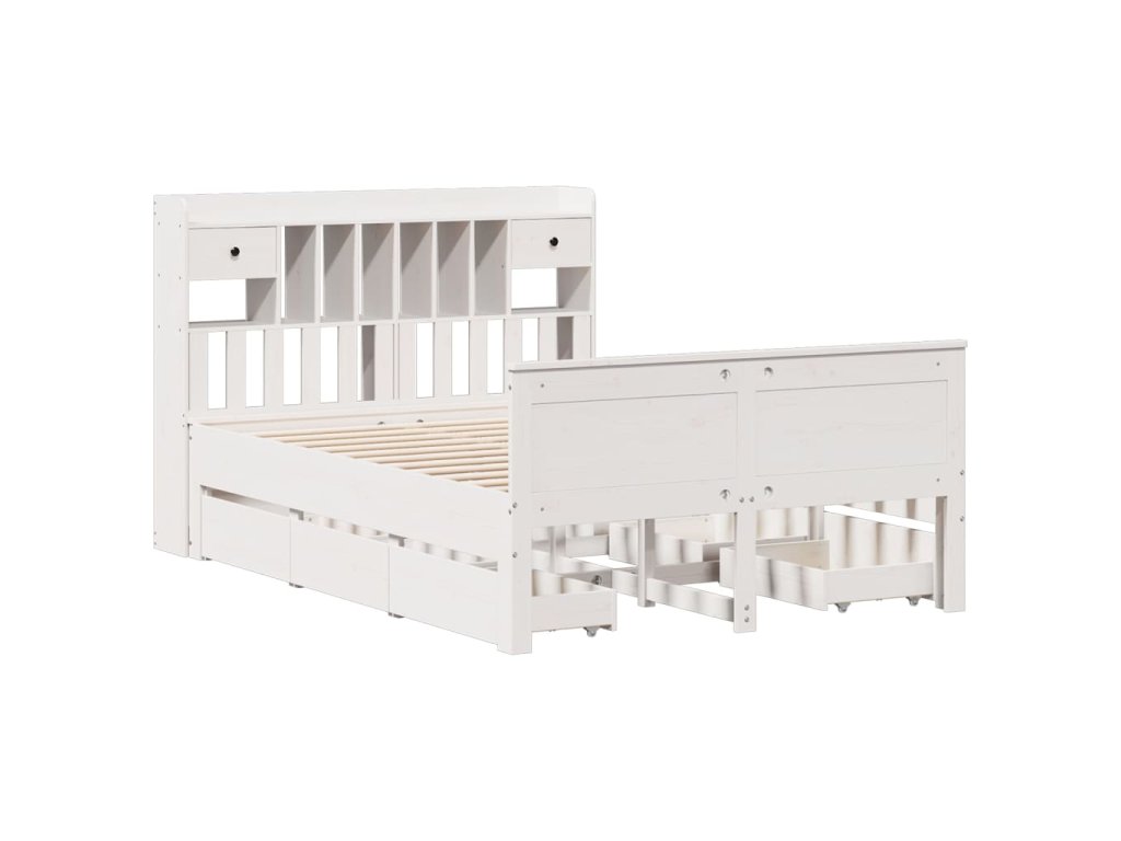Postel s knihovnou bez matrace bílá 140x200 cm masivní borovice 3308922