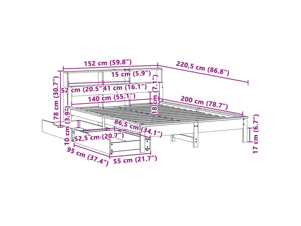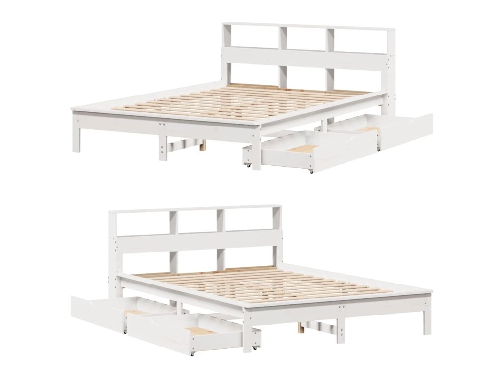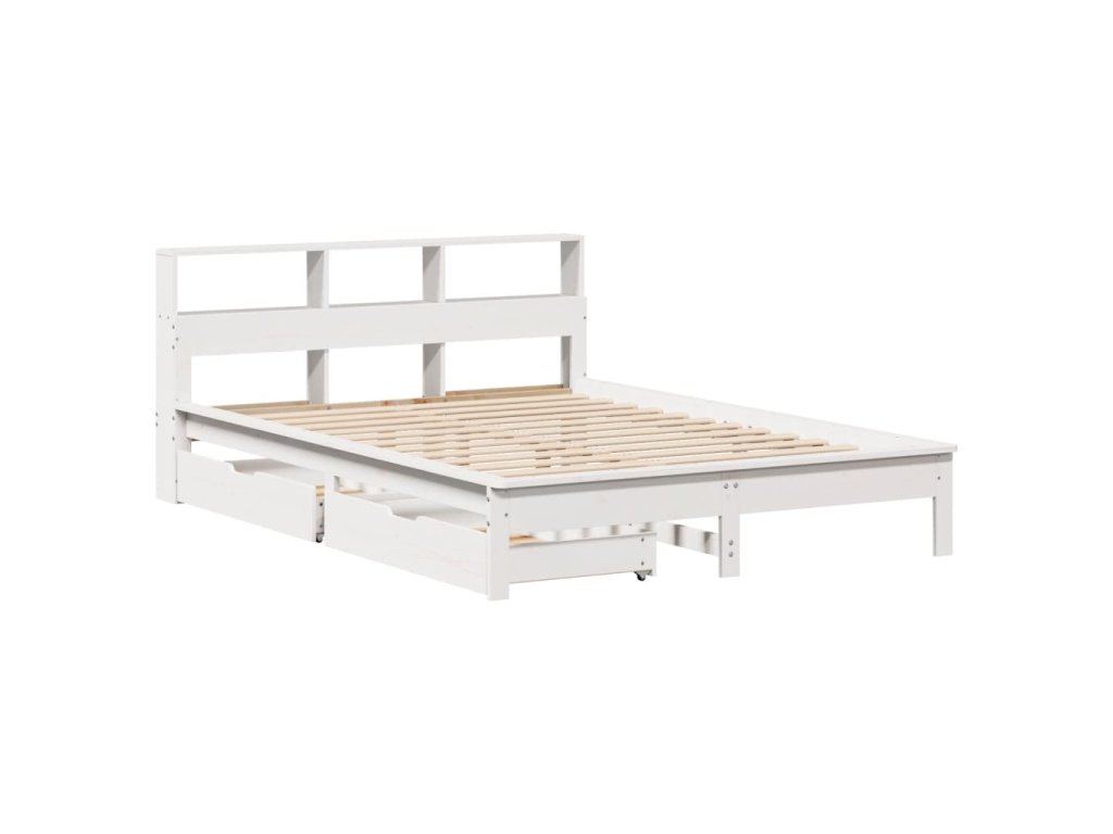 Postel s knihovnou bez matrace bílá 140x200 cm masivní borovice 3309810