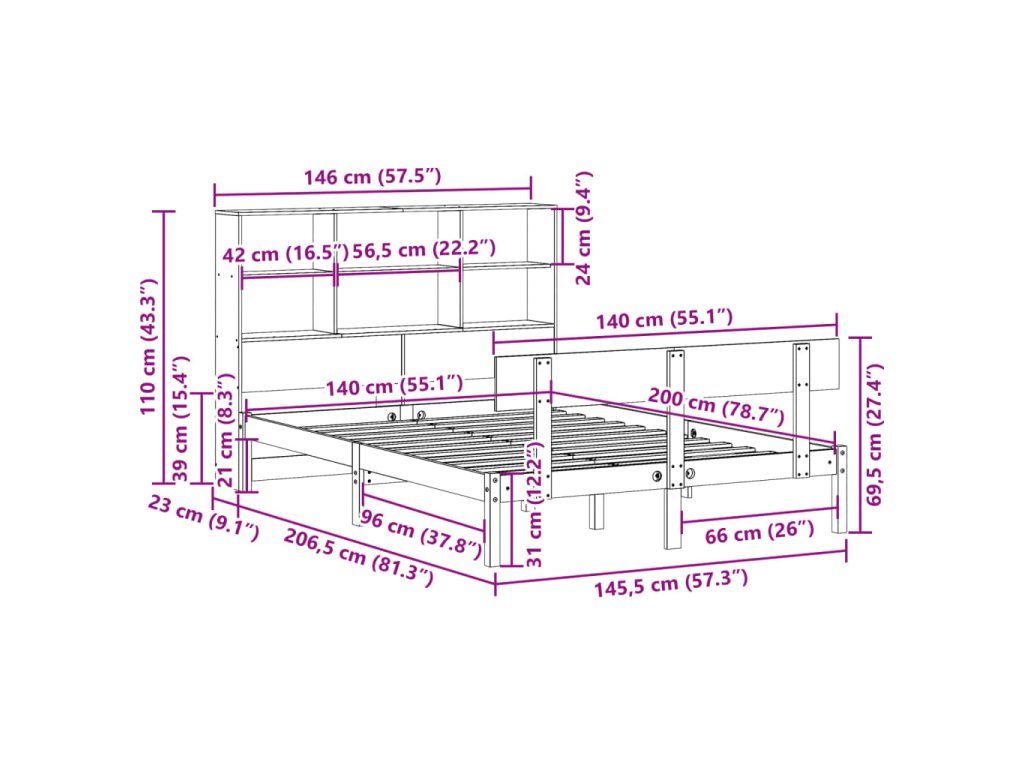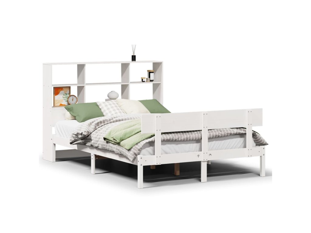Postel s knihovnou bez matrace bílá 140x200 cm masivní borovice 3321809