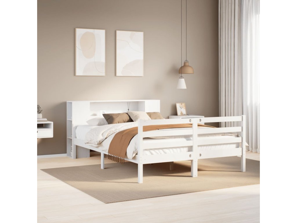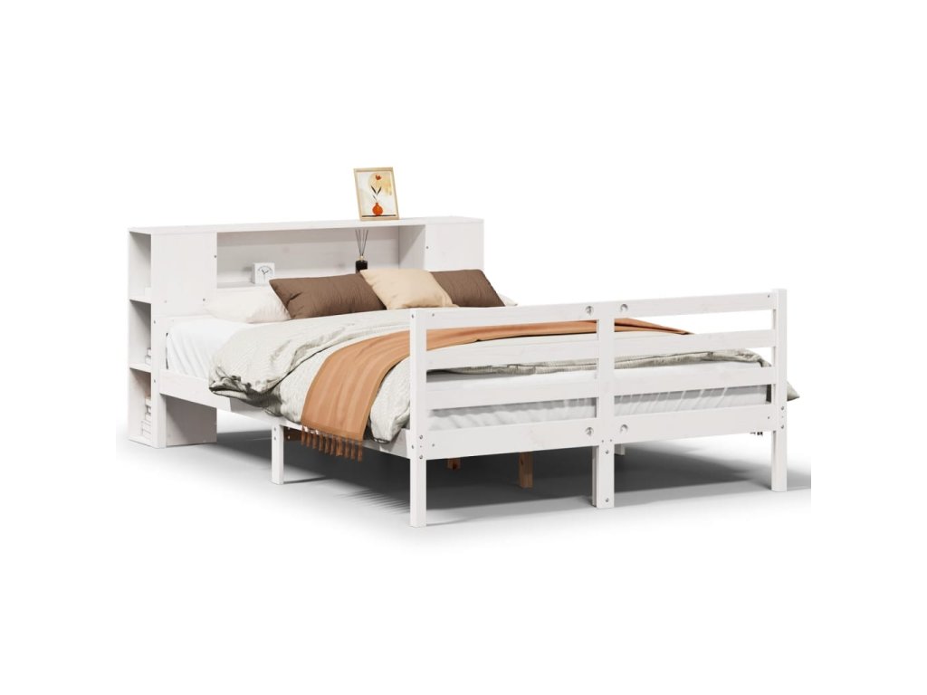 Postel s knihovnou bez matrace bílá 140x200 cm masivní borovice 3322204