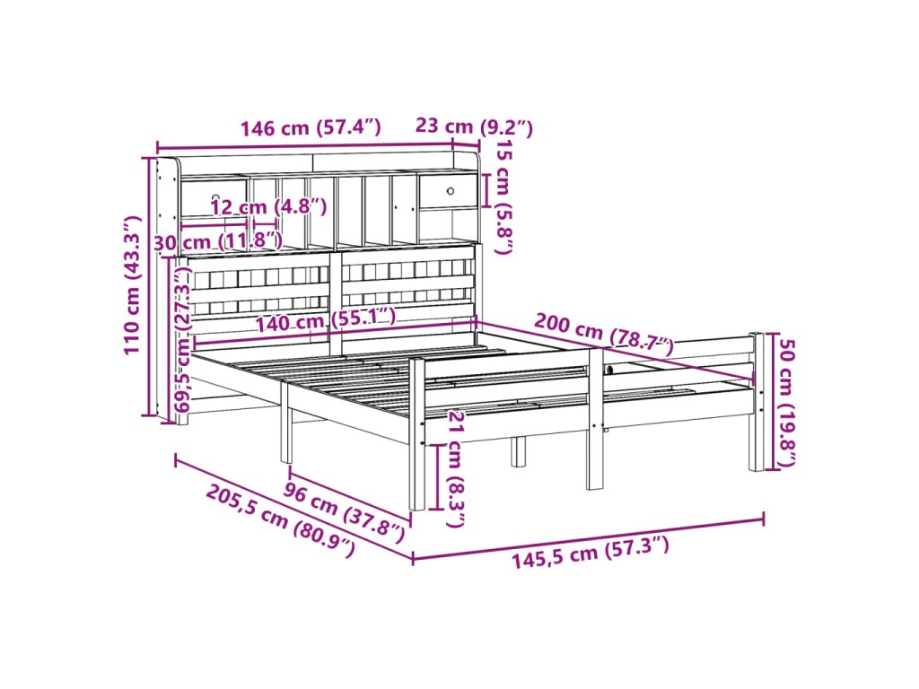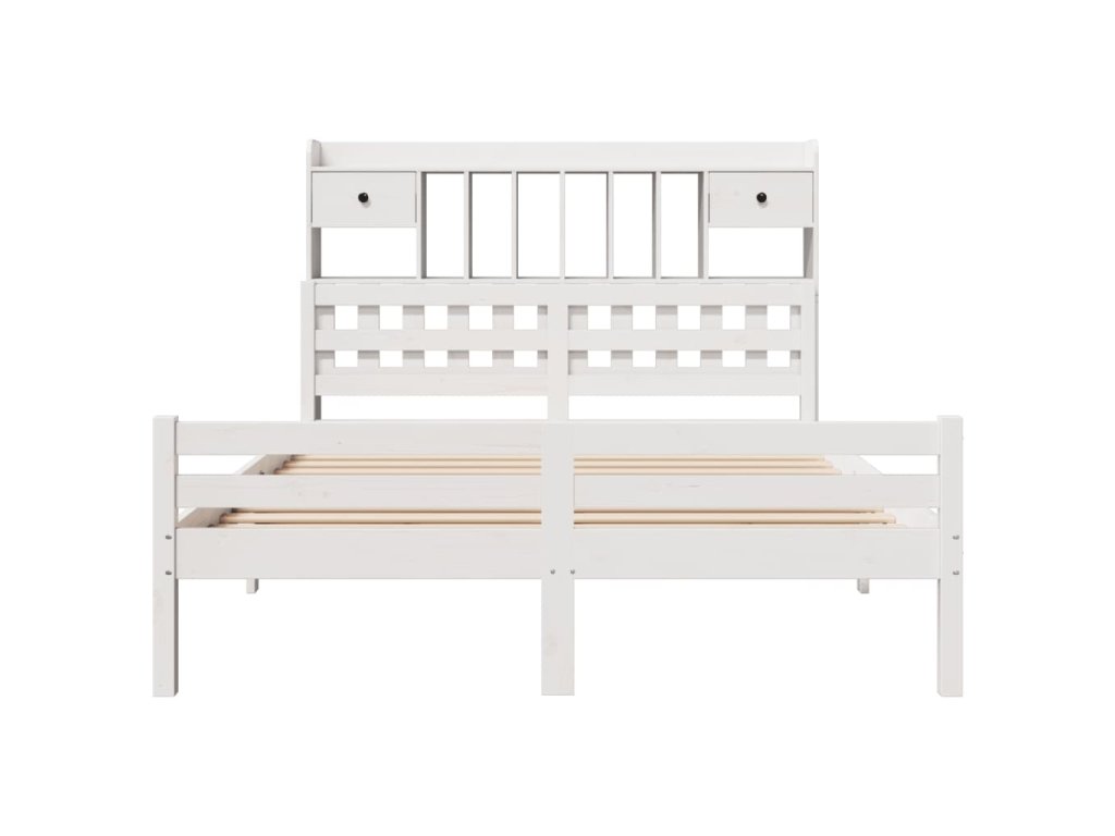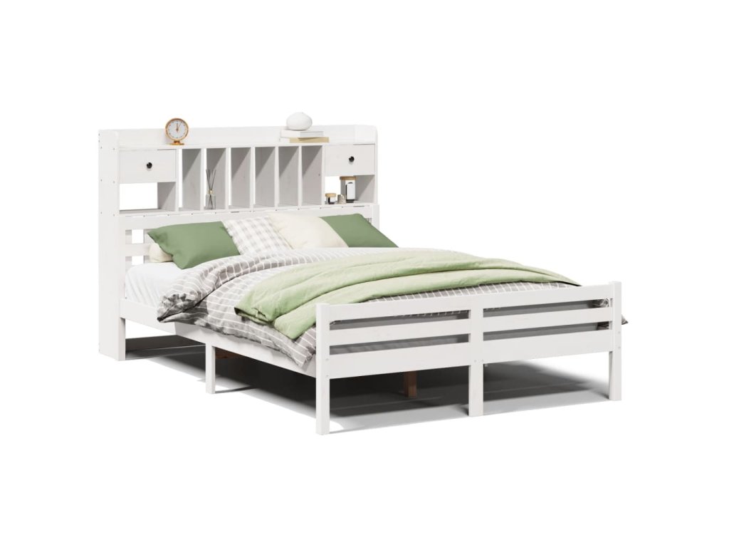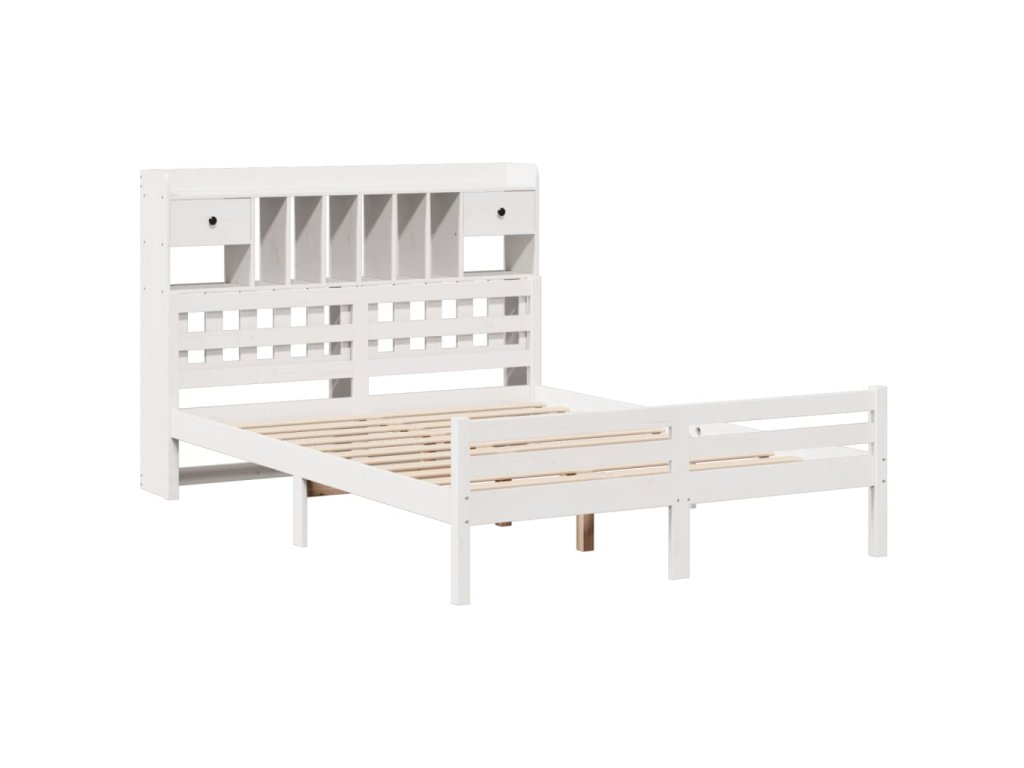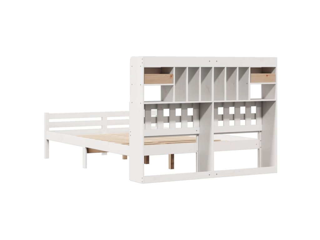 Postel s knihovnou bez matrace bílá 140x200 cm masivní borovice 3322264
