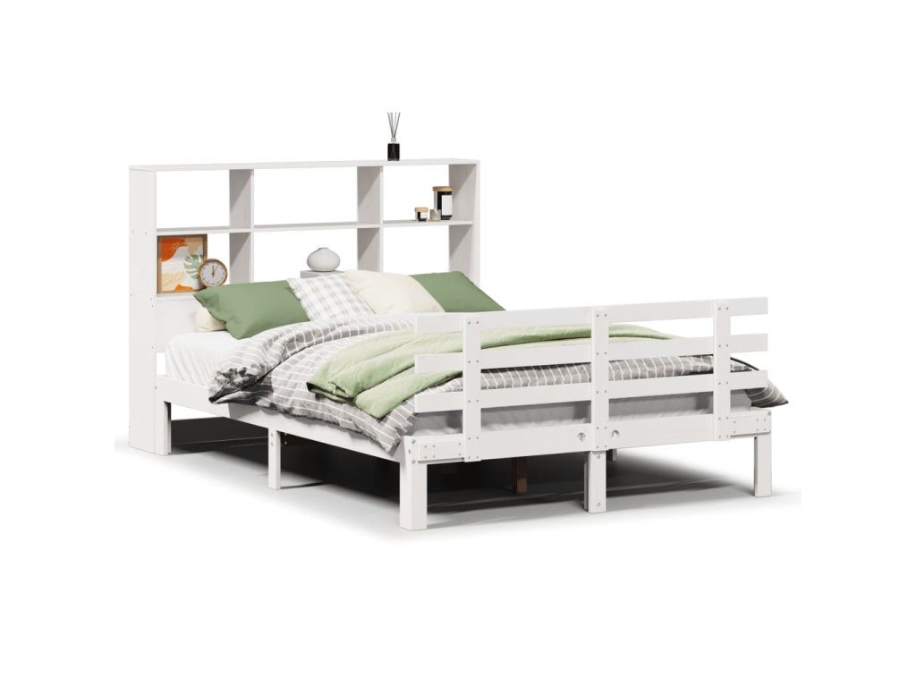Postel s knihovnou bez matrace bílá 140x200 cm masivní borovice 3322758