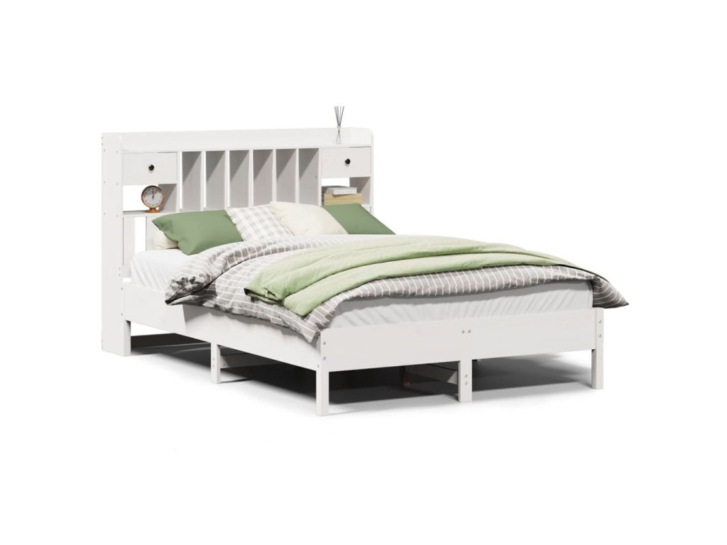 Postel s knihovnou bez matrace bílá 140x200 cm masivní borovice 3322910