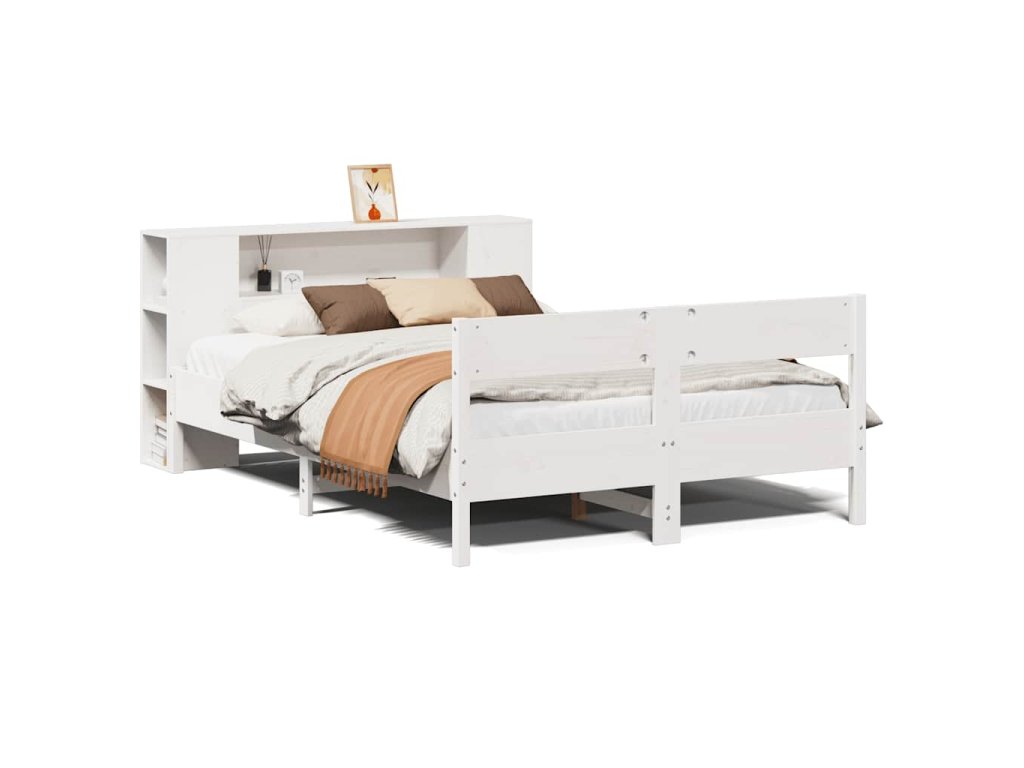 Postel s knihovnou bez matrace bílá 140x200 cm masivní borovice 3322949