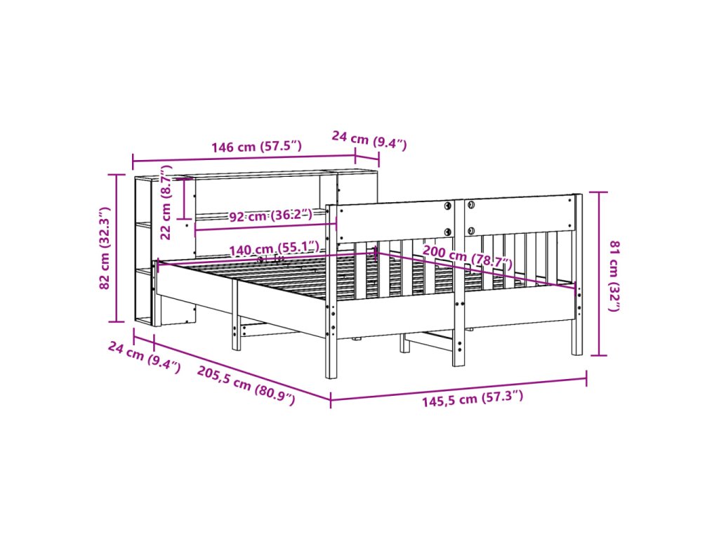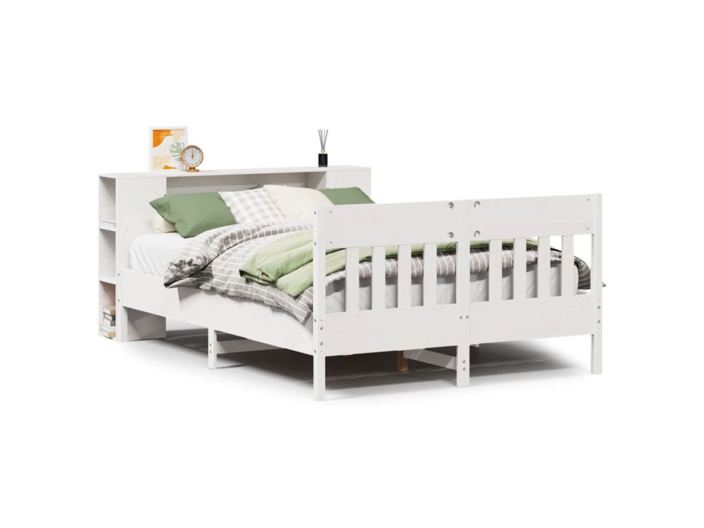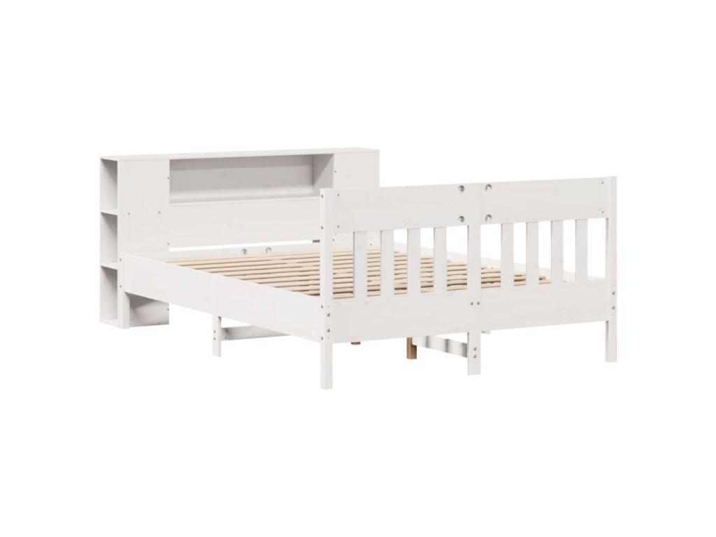 Postel s knihovnou bez matrace bílá 140x200 cm masivní borovice 3323183