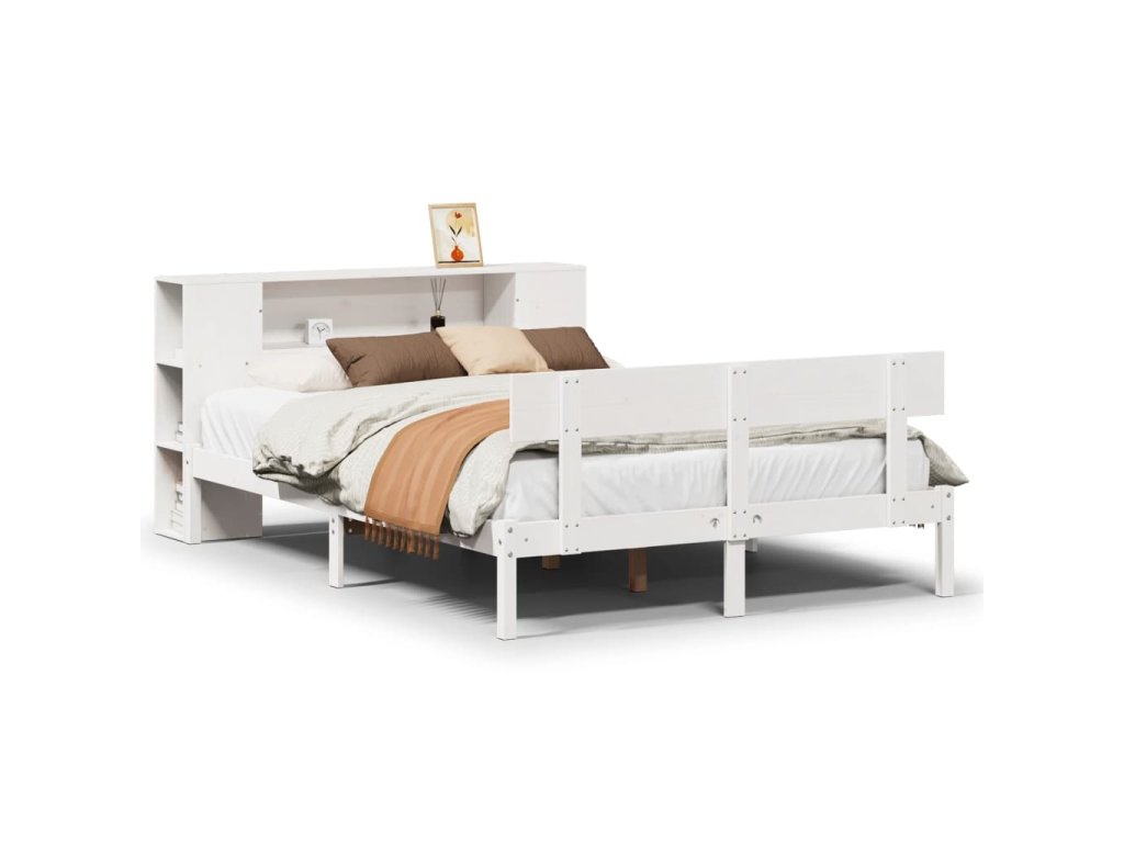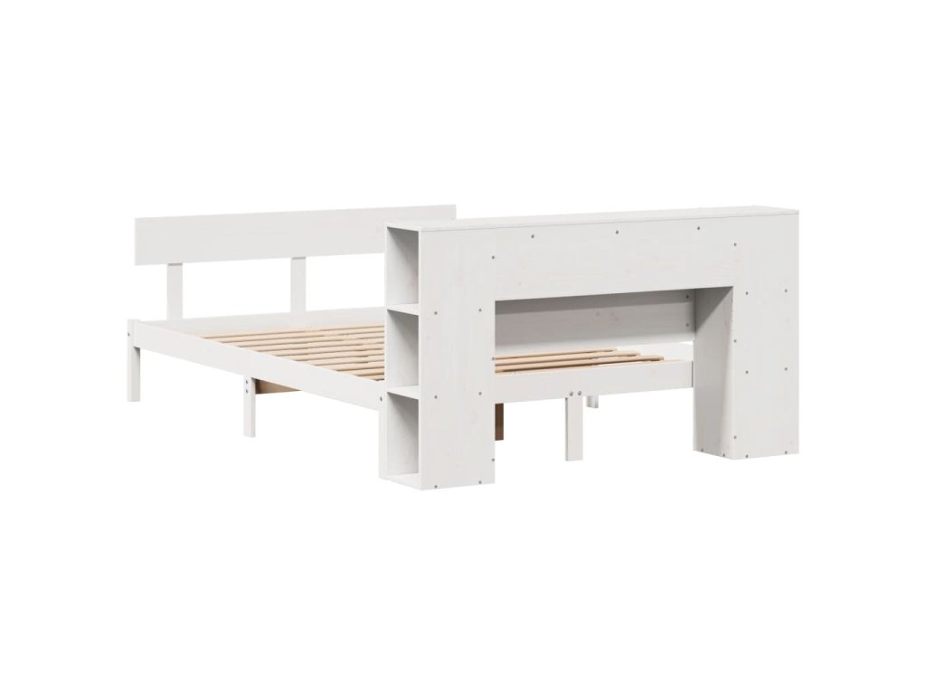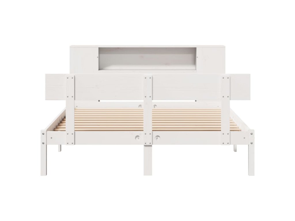 Postel s knihovnou bez matrace bílá 150x200 cm masivní borovice 3321777