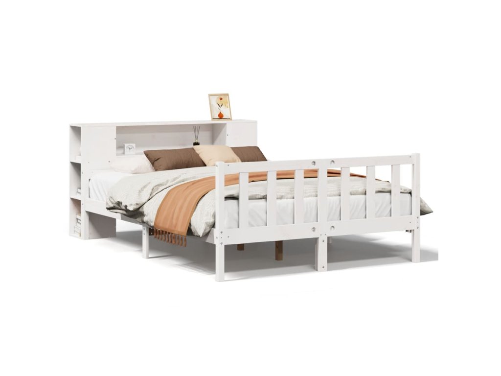 Postel s knihovnou bez matrace bílá 150x200 cm masivní borovice 3322089