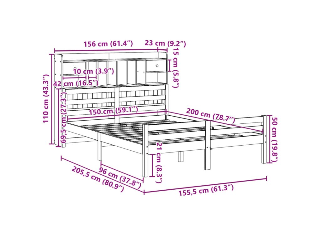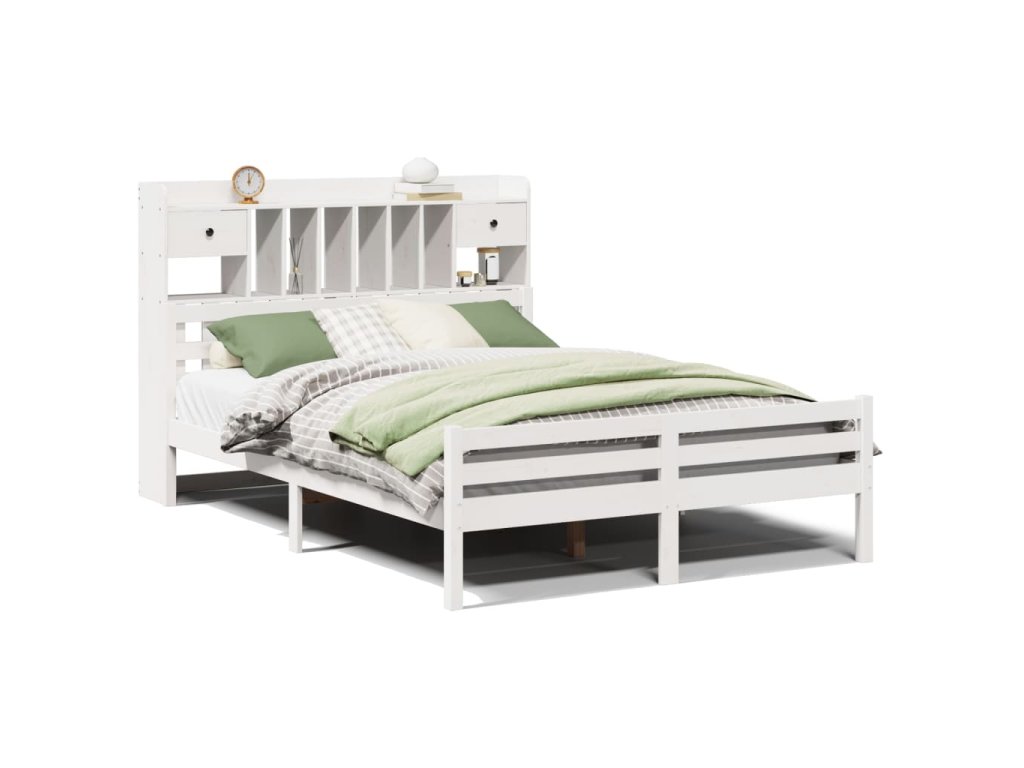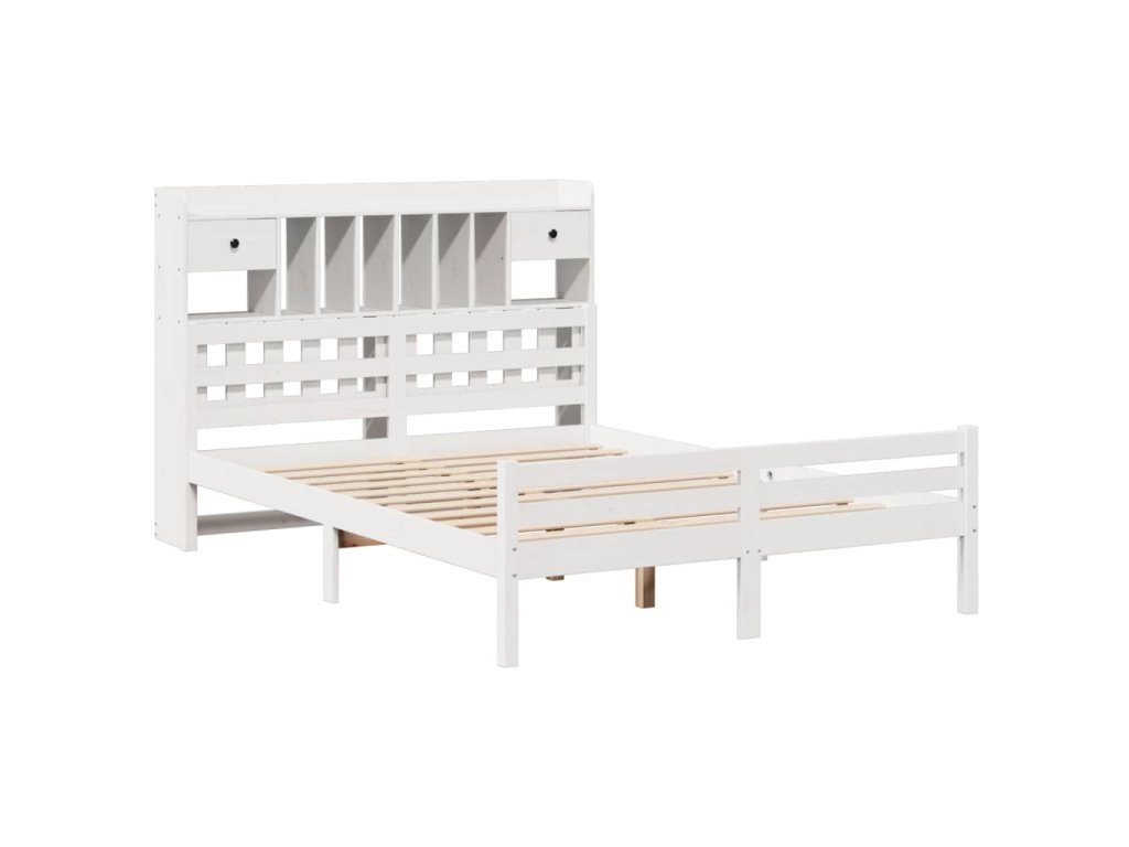 Postel s knihovnou bez matrace bílá 150x200 cm masivní borovice 3322266