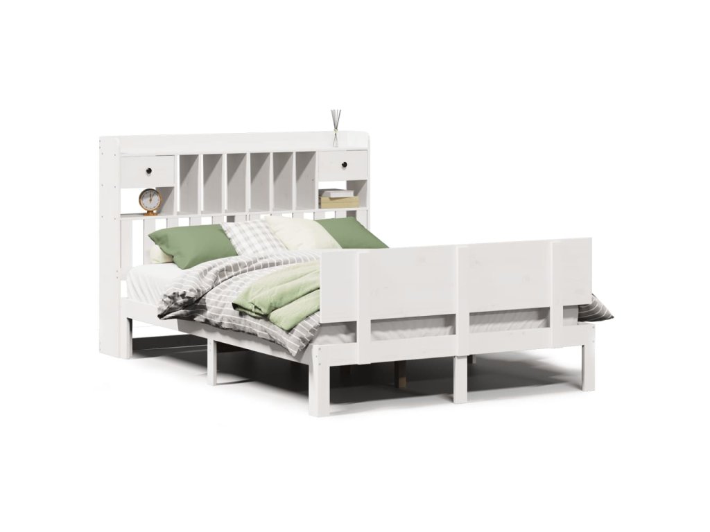 Postel s knihovnou bez matrace bílá 150x200 cm masivní borovice 3322695