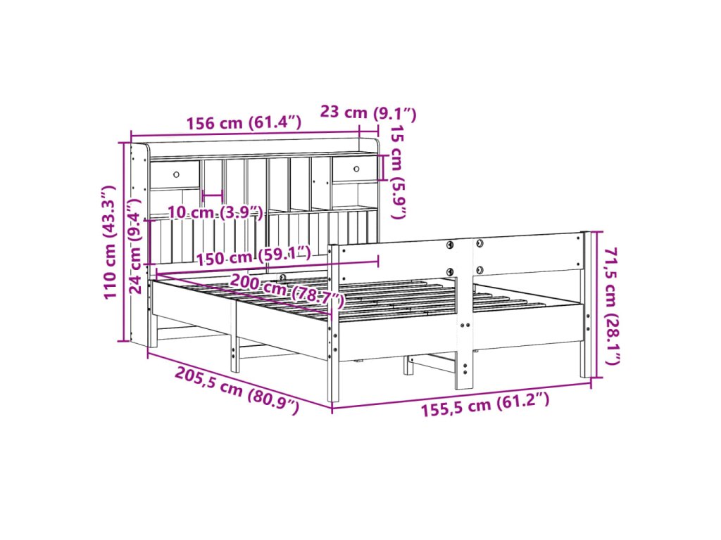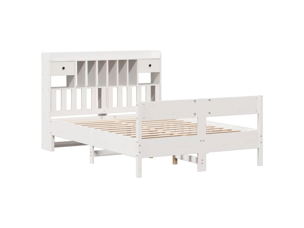 Postel s knihovnou bez matrace bílá 150x200 cm masivní borovice 3323024