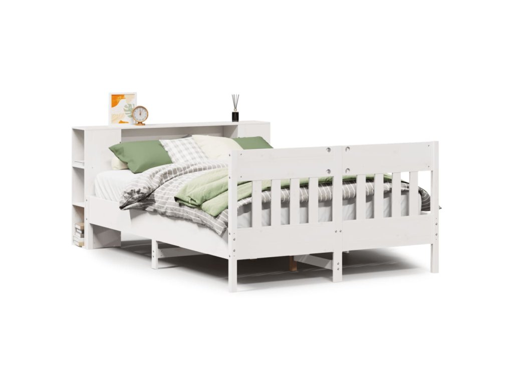 Postel s knihovnou bez matrace bílá 150x200 cm masivní borovice 3323180