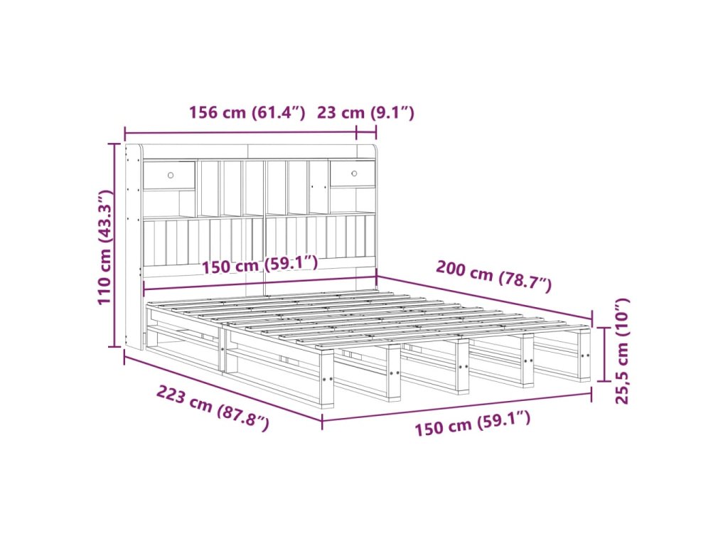 - Vhodné rozměry matrace: 150 x 200 cm (Š x D) (matrace není součástí balení)