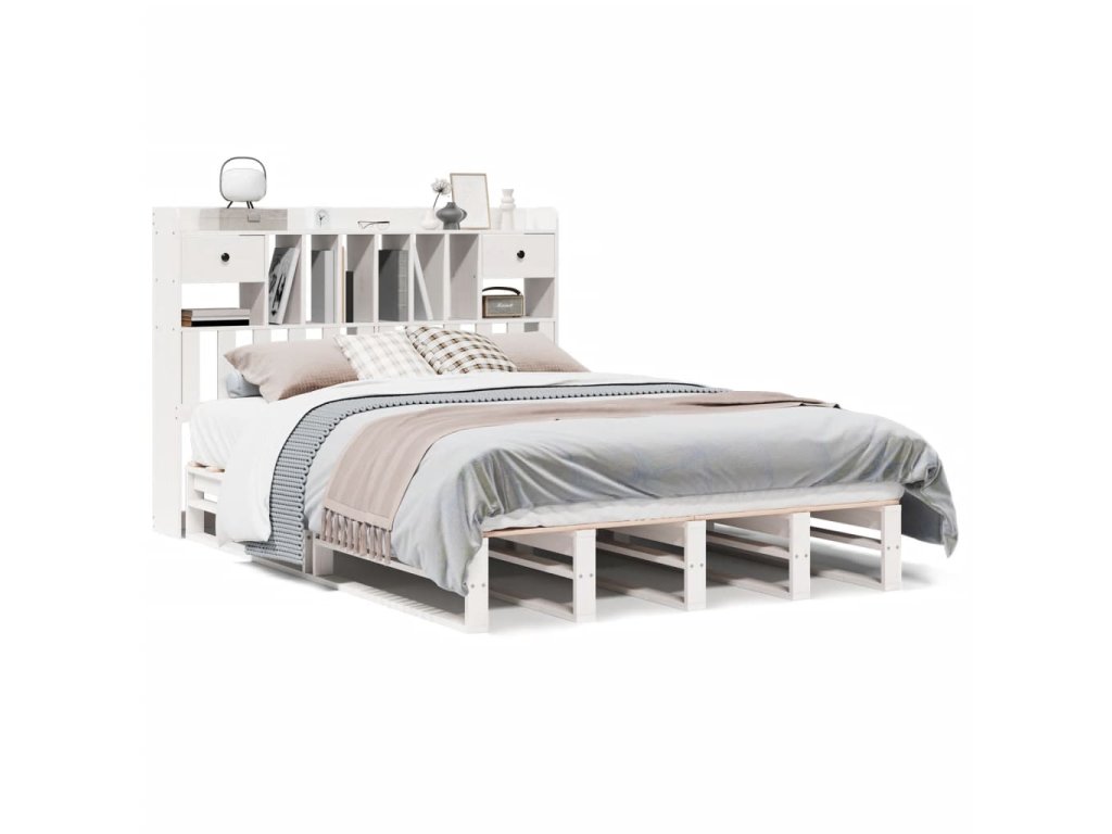 Postel s knihovnou bez matrace bílá 150x200 cm masivní borovice 3323963