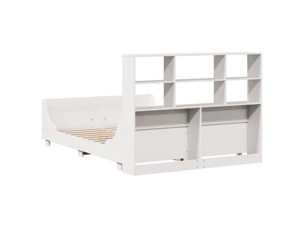 Postel s knihovnou bez matrace bílá 160 x 200 cm masivní dřevo 3323801